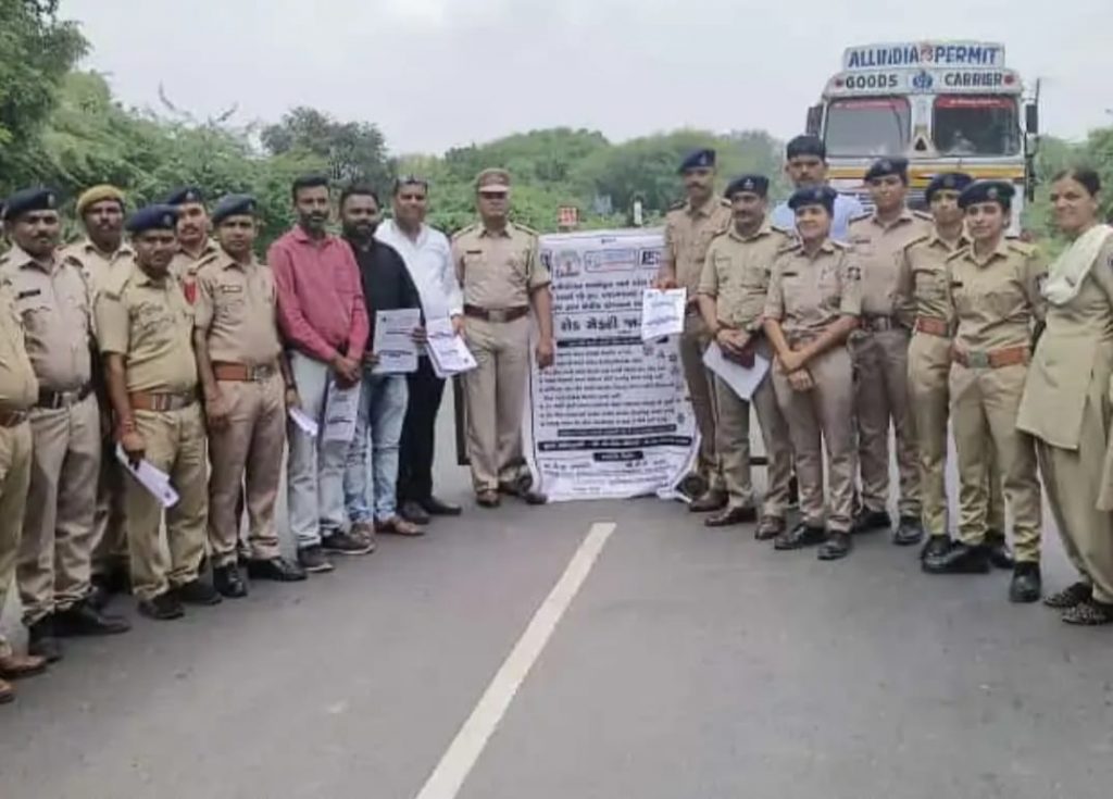 આવતીકાલે રક્ષાબંધન પર્વની ઉજવણી થનાર છે. ત્યારે કપડવંજ પોલીસ વિભાગ દ્વારા અનોખી રીતે રક્ષાબંધન પર્વ ઉજવાયો ખેડા જિલ્લાના કપડવંજ રેલીયા ચેક પોસ્ટ ખાતે નડિયાદ મોડાસા હાઇવે ઉપર વાહન ચાલકોની સુરક્ષાને ધ્યાનમાં રાખી ટ્રાફિક નિયમન ભંગ કરતા વાહન ચાલકોને મહિલા પોલીસ કર્મીઓ દ્વારા રાખડી બાંધી મો મીઠું કરાવી તમારા ઘરે તમારા પરિવારજનો, સ્નેહીજનો, ભાઈ-બહેન, માતા-પિતા, રાહ જોઈ બેઠા છે માટે તમે ટ્રાફિકના નિયમોનું પાલન કરો તેમ વાહનચાલકોને સમજાવ્યું હતું. આ કાર્યક્રમ દોસ્ત ફાઉન્ડેશન અને પટેલ એન્ટરપ્રાઇઝ તેમજ કપડવંજ રૂરલ પોલીસના સંયૂક્ત ઉપક્રમે યોજાયો હતો. રોડ સેફટીને લઈને પત્રિકા વિતરણ કરવામાં આવી હતી. સાથે જ પોલીસ સ્ટાફ દ્વારા વાહન ચાલકને રાખડી બાંધી હેલ્મેટ પહેરવું, સ્પીડ લિમિટ તેમજ અન્ય બાબતો ધ્યાન રાખવા સૂચન કરવામાં આવ્યું હતું. આ સાથે વાહન ચાલકોને દોસ્ત ફાઉન્ડેશન અને ડાબર ઇન્ડિયા લિમિટેડના સંયુક્ત ઉપક્રમે તેમજ પટેલ એન્ટરપ્રાઇઝના સહયોગથી  મેંગો જ્યૂશ, ગાવા જ્યૂશ,  રિયલ કોકોનટ વોટર વગેરે આપવામાં આવ્યા હતા. વિશ્વ ઉમિયા ફાઉન્ડેશનની બહેનો દ્વારા પોલીસ વિભાગને રાખડી બાંધી તેમજ રાહદારીઓને પણ રાખડી બાંધી રોડ સેફટી જાળવવા અપીલ કરાઈ હતી. આ કાર્યક્રમમા કપડવંજ વિભાગના ડીવાયએસપી વી.એન. સોલંકી, પીઆઈ વી.જી.પ્રજાપતિ, પીએસઆઇ ડી.કે. રાઠોડ, રૂરલ પોલીસ સ્ટેશન, કપડવંજ તેમજ પટેલ એન્ટરપ્રાઇઝ કેતનભાઈ પટેલ, દોસ્ત ફાઉન્ડેશનના અનિલ રોહિત, પરેશભાઈ પટેલ તેમજ ટીમ સહિત સ્વય સેવકો હાજર રહી સેવાઓ તેમજ જાગૃતિ પુરી પાડી હતી.