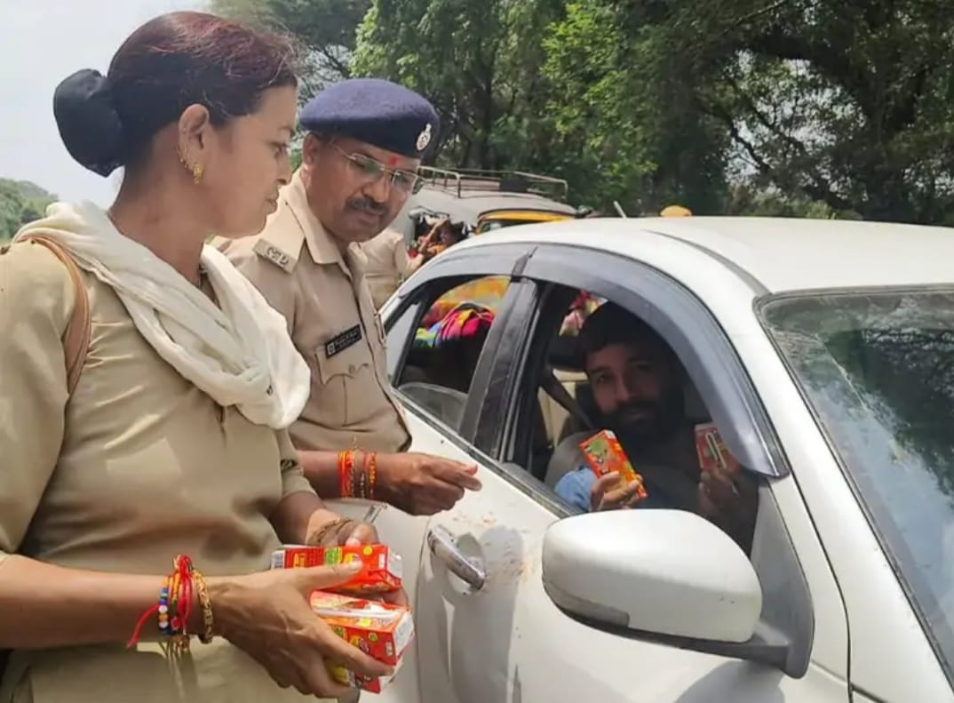 આવતીકાલે રક્ષાબંધન પર્વની ઉજવણી થનાર છે. ત્યારે કપડવંજ પોલીસ વિભાગ દ્વારા અનોખી રીતે રક્ષાબંધન પર્વ ઉજવાયો ખેડા જિલ્લાના કપડવંજ રેલીયા ચેક પોસ્ટ ખાતે નડિયાદ મોડાસા હાઇવે ઉપર વાહન ચાલકોની સુરક્ષાને ધ્યાનમાં રાખી ટ્રાફિક નિયમન ભંગ કરતા વાહન ચાલકોને મહિલા પોલીસ કર્મીઓ દ્વારા રાખડી બાંધી મો મીઠું કરાવી તમારા ઘરે તમારા પરિવારજનો, સ્નેહીજનો, ભાઈ-બહેન, માતા-પિતા, રાહ જોઈ બેઠા છે માટે તમે ટ્રાફિકના નિયમોનું પાલન કરો તેમ વાહનચાલકોને સમજાવ્યું હતું. આ કાર્યક્રમ દોસ્ત ફાઉન્ડેશન અને પટેલ એન્ટરપ્રાઇઝ તેમજ કપડવંજ રૂરલ પોલીસના સંયૂક્ત ઉપક્રમે યોજાયો હતો. રોડ સેફટીને લઈને પત્રિકા વિતરણ કરવામાં આવી હતી. સાથે જ પોલીસ સ્ટાફ દ્વારા વાહન ચાલકને રાખડી બાંધી હેલ્મેટ પહેરવું, સ્પીડ લિમિટ તેમજ અન્ય બાબતો ધ્યાન રાખવા સૂચન કરવામાં આવ્યું હતું. આ સાથે વાહન ચાલકોને દોસ્ત ફાઉન્ડેશન અને ડાબર ઇન્ડિયા લિમિટેડના સંયુક્ત ઉપક્રમે તેમજ પટેલ એન્ટરપ્રાઇઝના સહયોગથી  મેંગો જ્યૂશ, ગાવા જ્યૂશ,  રિયલ કોકોનટ વોટર વગેરે આપવામાં આવ્યા હતા. વિશ્વ ઉમિયા ફાઉન્ડેશનની બહેનો દ્વારા પોલીસ વિભાગને રાખડી બાંધી તેમજ રાહદારીઓને પણ રાખડી બાંધી રોડ સેફટી જાળવવા અપીલ કરાઈ હતી. આ કાર્યક્રમમા કપડવંજ વિભાગના ડીવાયએસપી વી.એન. સોલંકી, પીઆઈ વી.જી.પ્રજાપતિ, પીએસઆઇ ડી.કે. રાઠોડ, રૂરલ પોલીસ સ્ટેશન, કપડવંજ તેમજ પટેલ એન્ટરપ્રાઇઝ કેતનભાઈ પટેલ, દોસ્ત ફાઉન્ડેશનના અનિલ રોહિત, પરેશભાઈ પટેલ તેમજ ટીમ સહિત સ્વય સેવકો હાજર રહી સેવાઓ તેમજ જાગૃતિ પુરી પાડી હતી.