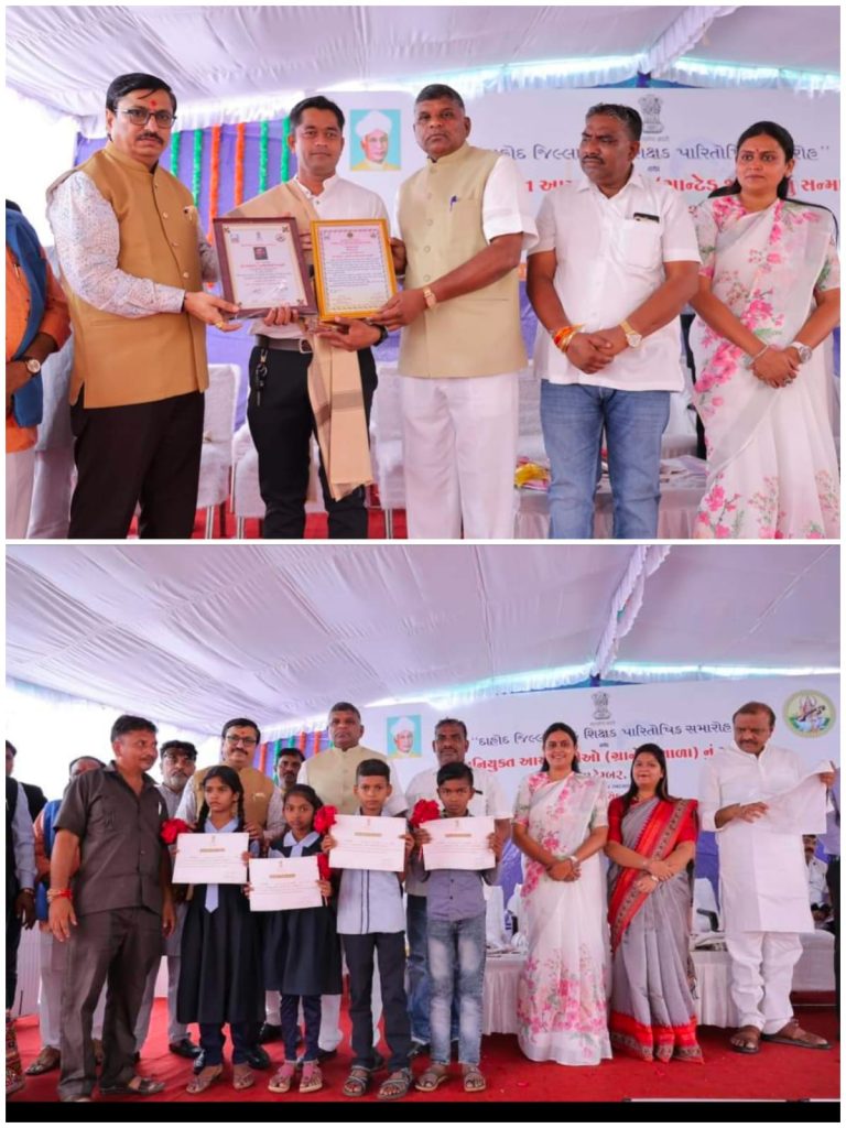 દાહોદ ખાતે જિલ્લા શ્રેષ્ઠ શિક્ષક પારિતોષિક સમારોહમાં વરોડ પ્રાથમિક શાળાના શિક્ષકનું સન્માન કરવામાં આવ્યું.