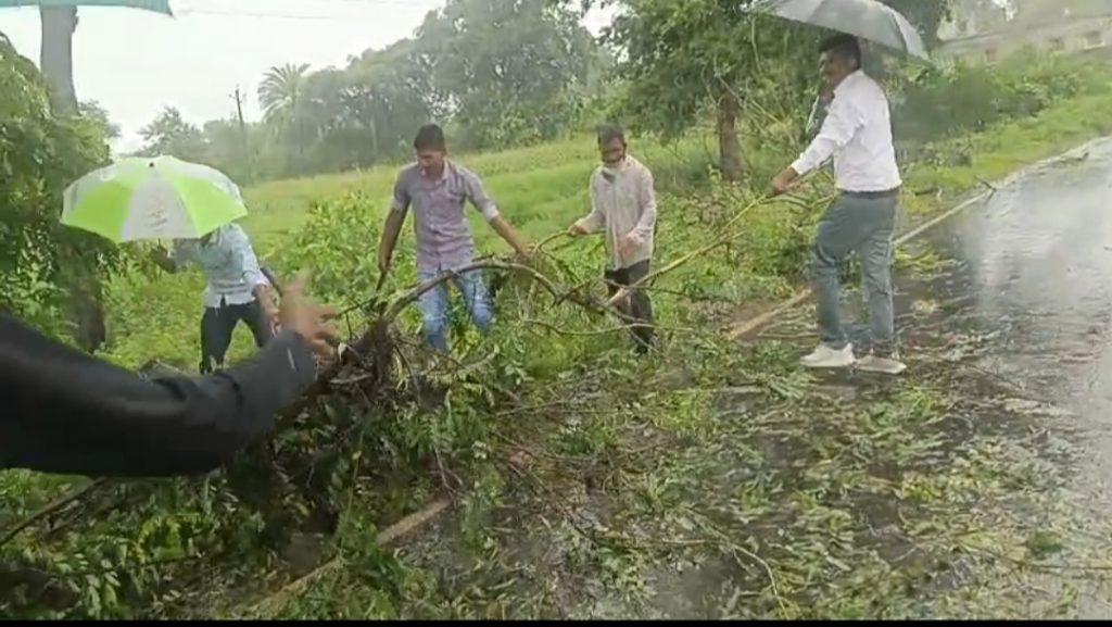 ફતેપુરાના વાંગડ ગામે રસ્તા ઉપર ઝાડ પડી જતા પીએસઆઇ જીબી તડવી તથાસ્ટાફ દ્વારા ઝાડ કાપી રસ્તો ખુલ્લો કરાયો