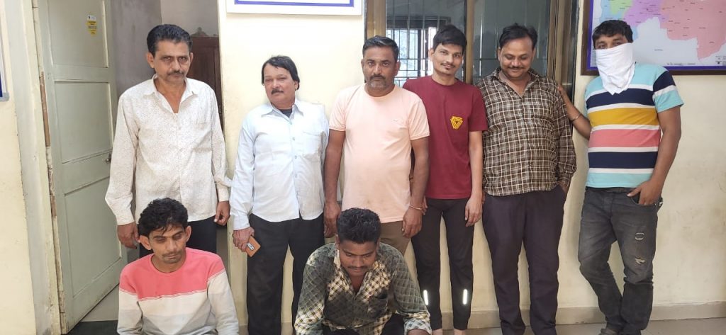 .માંડલી ખાતે તબેલા જુગાર રમાડતા જુગાર ધામ પર પોલીસે છાપો માર્યો .52,350 ના મુદ્દા માલ સાથે આઠ જુગારીઓને ઝડપી પાડી વોન્ટેડ તબેલા સંચાલક સહિત 9 સામે ગુનો નોંધી કાર્યવાહી કરાઈ માંડલી ગામે અલ્કેશભાઇ ધુળાભાઈ બામણીયા ના તબેલા ઉપર જુગાર રમાડતા હોવાની બાતમીના આધારે પોલીસે રેડ પાડતા જુગારીઓમાં નાશ ભાગ મચી જવા પામી હતી. જુગાર રમતા ઝડપાયેલા નબીરાઓ વૈભવ કુમાર સુરેશભાઈ જૈન ,મજીદ સતાર શેખ, રિઝવાન રજાક તુરા, બનટુ લક્ષ્મણ હરીજન, રમણ ધના ચારેલ, દલપતસિંહ બળવંતસિંહ ખાટ, વિકાસ નરેન્દ્ર જૈન, કાદર મોહમ્મદ શેખ,જેમાં 48,850 ની રોકડ રકમ તેમજ 3500 ના ત્રણ મોબાઇલ મળી કુલ 52,350 મુદ્દા માલ સાથે આઠ નબીરાઓને ઝડપી પાડ્યા જ્યારે તબેલા સંચાલક અલ્કેશભાઈ ધુળાભાઈ બામણીયા પોલીસને હાથ તાળી આપી ફરાર થઈ ગયો હતો ત્યારે નવ સામે ગુનો નોંધી અને આગળની કાર્યવાહી હાથ ધરી હતી.