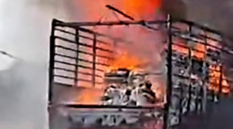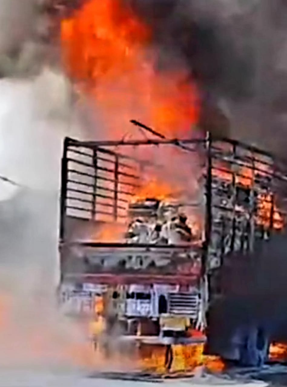 નડિયાદ પાસે આઇસર ટ્રકમાં આગ લાગતાં નાસભાગ મચી ગઇ હતી
