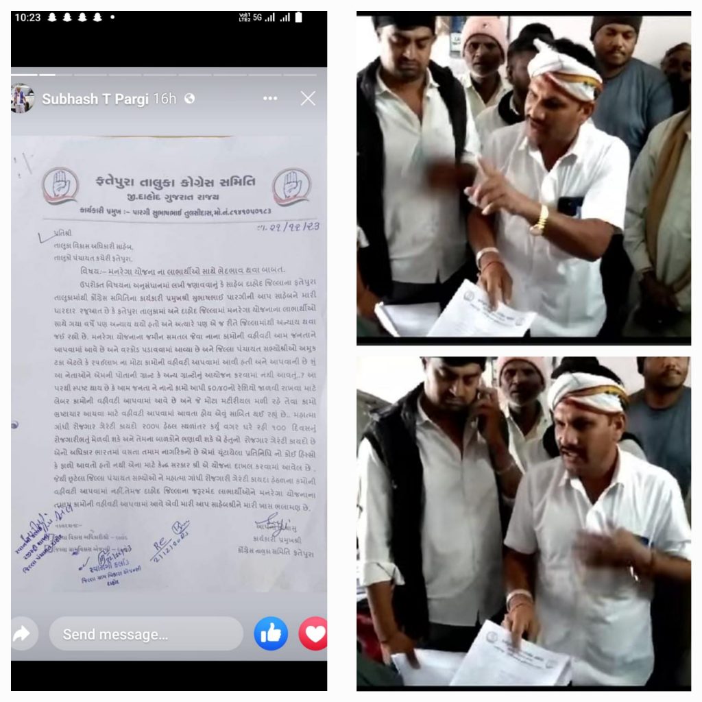 ફતેપુરા તાલુકામાં મનરેગા યોજના ના લાભાર્થીઓ સાથે ભેદભાવના થતો હોવાના આક્ષેપ સાથે તાલુકા વિકાસ અધિકારીને આવેદનપત્ર આપવામાં આવ્યું.