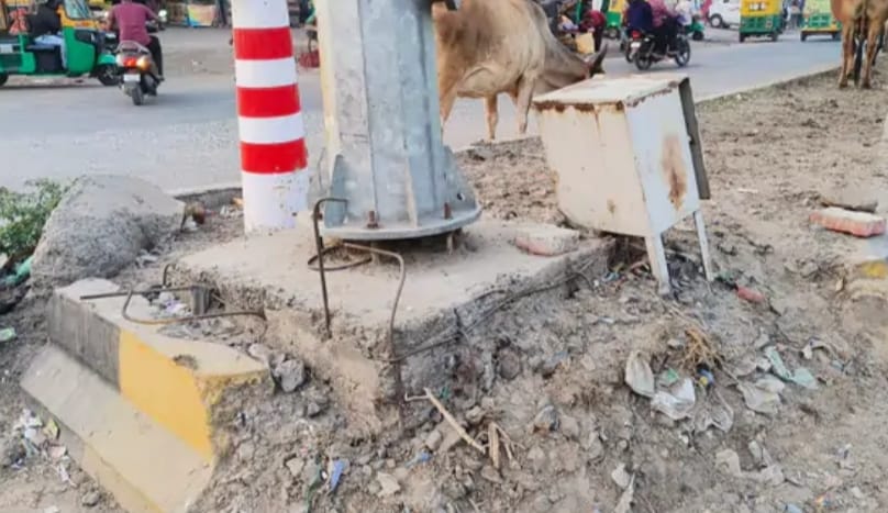 ખેડા ચોકડી પાસે વીજ પોલ લોકો માટે જોખમી સાબિત થઈ શકે તેવી શક્યતાઓ.