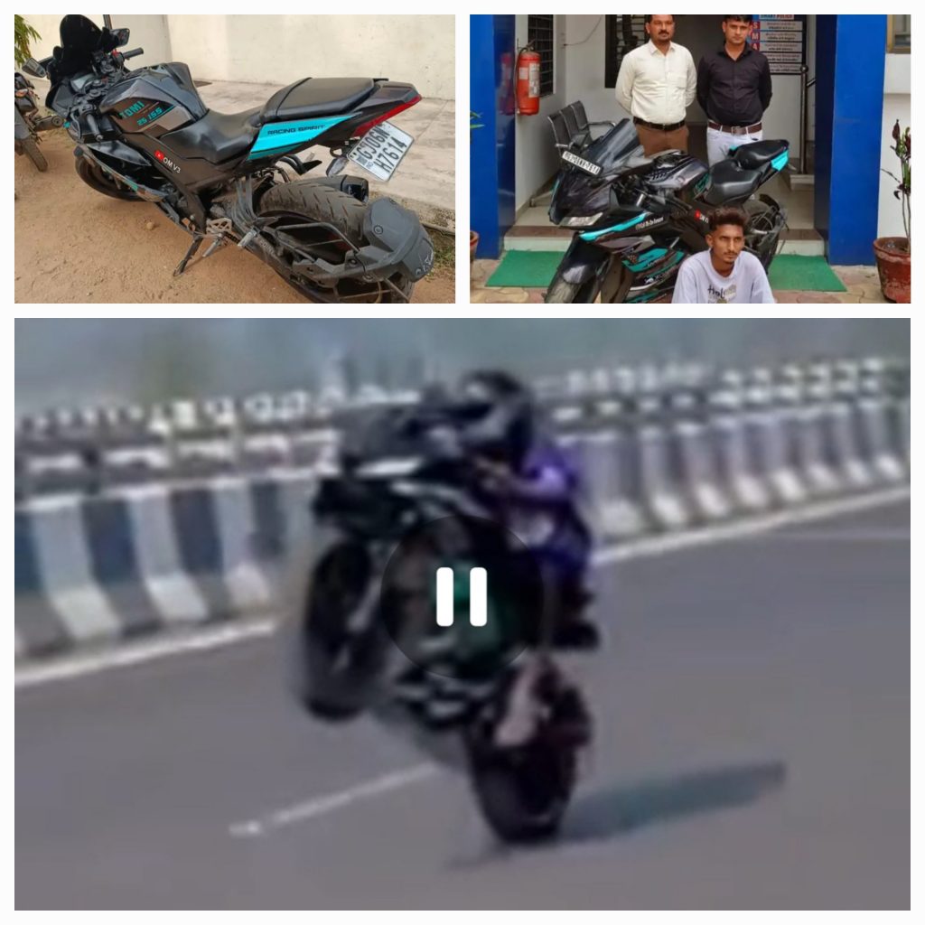 મહીસાગર જિલ્લાના પાનમ બ્રિજ પર બાઇક પર જોખમી સ્ટંટ કરતા યુવાનની કરાઈ ધરપકડ,
