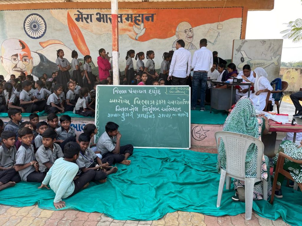 આજરોજ તારીખ 05/02/ 2024 ના રોજ ઝાલોદ તાલુકાની ડુંગરી પ્રાથમિક શાળામાં જિલ્લા પંચાયત દાહોદના આરોગ્ય વિભાગ દ્વારા આયોજિત સિકલ સેલ નિર્મૂલન અભિયાન દ્વારા કેમ્પનું આયોજન કરવામાં આવ્યું જેમાં ધોરણ પાંચથી આઠના વિદ્યાર્થીઓનું ચેકઅપ કરવામાં આવ્યું હતું. અને પ્રાથમિક આરોગ્ય કેન્દ્ર ડુંગરીના મેડિકલ ઓફિસર ડૉ.આસીમ શેખ સાહેબ દ્વારા સિકલ સેલ માટે જરૂરી માહિતી આપવામાં આવી હતી. અને આર.બી.એસ. કે મેડિકલ ઓફિસર ડૉ. કિરણ ડામોર કોમ્યુનિટી હેલ્થ ઓફિસર શ્રદ્ધાબેન રાવત, સૌરભભાઈ ડામોર મનહરભાઈ સંગાડા, યામીનીબેન માહેરા સિકલસેલ કાઉન્સિલર રેખાબેન ડામોર અને શાળાનો સમગ્ર સ્ટાફ ખૂબ ઉત્સાહપૂર્વક જોડાઈ ચેક અપ કાર્યક્રમ યોજવામાં આવ્યો હતો.