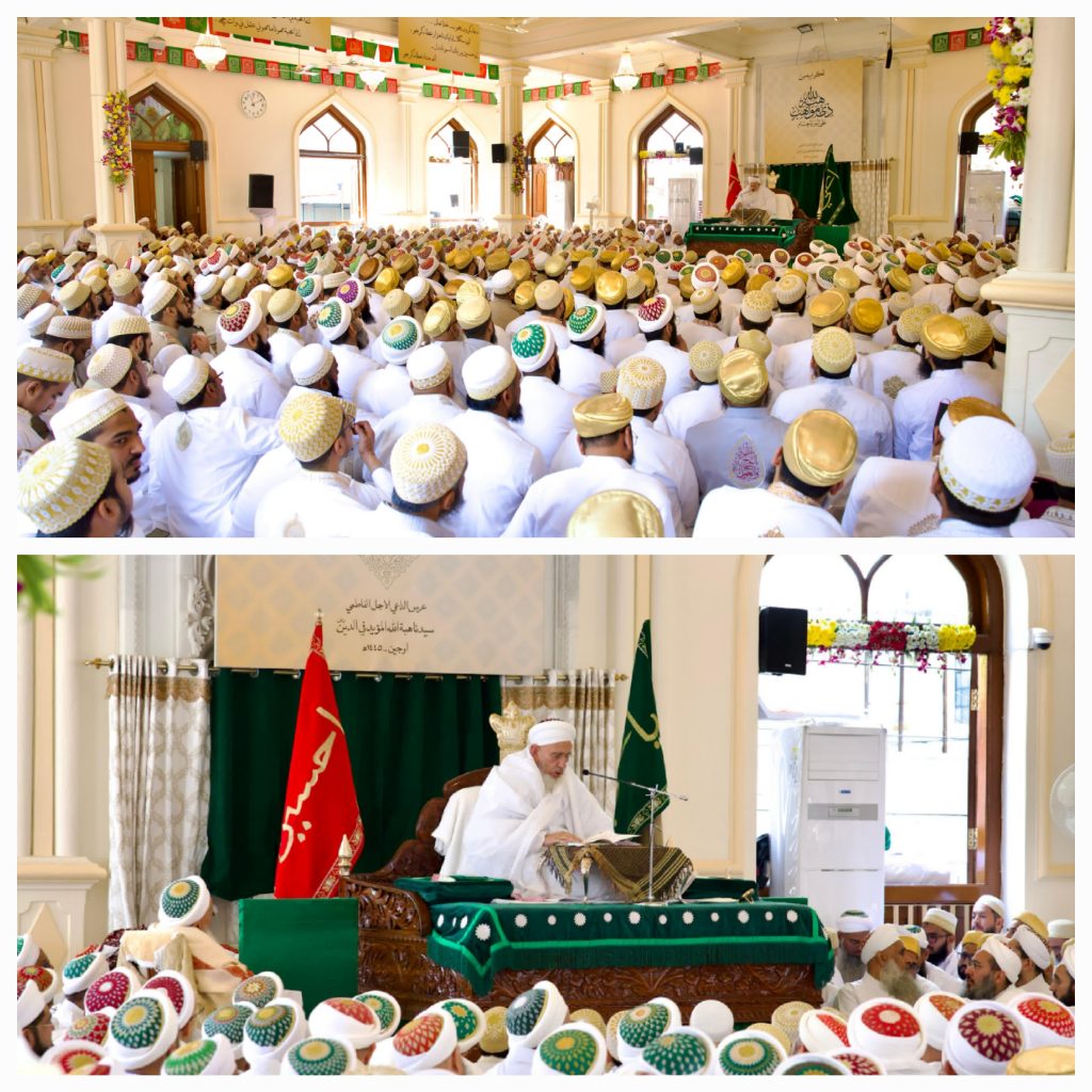 कादरी मस्जिद परिसर और शहर के अन्य सामुदायिक केंद्रों में एकत्र हुए 30,000 से अधिक समुदाय के सदस्यों को संबोधित करते हुए, सैयदना ने उन्हें सर्वोत्तम विशेषताओं को विकसित करने, विशेष रूप से गलत काम से दूर रहने और मानवता की सेवा जारी रखने की प्रेरणा दी।उज्जैन में दाऊदी बोहरा समुदाय एक जीवंत और सक्रिय समुदाय है जो अपनी परंपराओं के प्रति सच्चे रहते हुए आधुनिकता को अपनाने के लिए समर्पित है। 10,000 से अधिक समुदाय के सदस्य उज्जैन के विभिन्न क्षेत्रों जै�