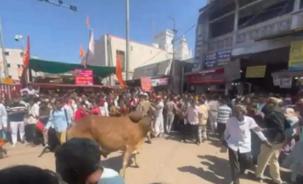ડાકોરમાં આખલાના ત્રાસથી યાત્રાળુઓમા નાસભાગ મચી ગઇ
