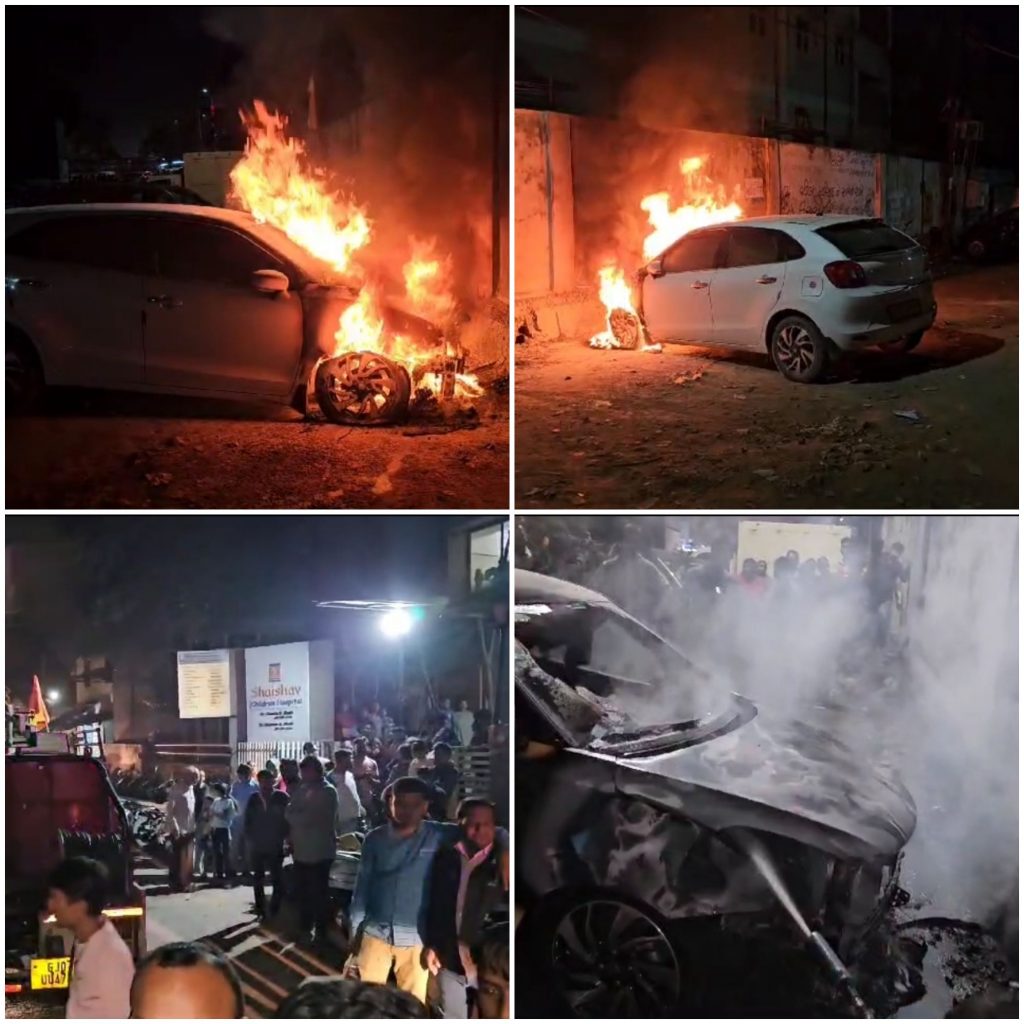 નડિયાદમાં હોસ્પિટલ સામે પાર્ક કરેલી કારમાં આગ લાગતાં દોડધામ મચી ગઇ