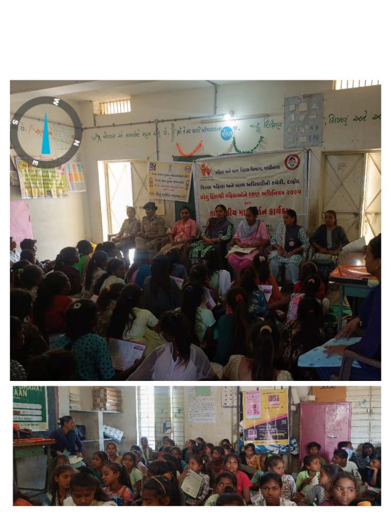 આજરોજ આંતરરાષ્ટ્રીય મહિલા દિન નિમિત્તે દાહોદ ના ગામ: નગરાળા પ્રાથમિક શાળામાં અભ્યાસ કરતા. ધોરણ 01 થી 08 ના કિશોર અને કિશોરીઓમાં જાતિગત ભેદભાવ અને ઘરેલુ હિંસા અંગે જાગૃતિ કાર્યક્રમ યોજાયો .જેમાં જિલ્લા મહિલા અને બાળ અધિકારીની કચેરી દાહોદના કર્મચારી .(મહિલા અને બાળ વિકાસ વિભાગ ). જિલ્લા બાળ સુરક્ષા એકમ દાહોદ ના કર્મચારી .અને 181 અભયમ મહિલા હેલ્પલાઇન ટીમ દાહોદ ઉપસ્થિત રહીને કિશોર અને કિશોરીઓને જાતિગત ભેદભાવ ઘરેલુ હિંસા થી મહિલાઓની રક્ષણ અધિનિયમ 2005 હેઠળ કાયદાકીય માર્ગદર્શન સમજ આપી .ગુડ ટચ ,બેડ ટચ (ખરાબ અને સારું સ્પર્શ )વિશેની કિશોર અને કિશોરીઓને સમજ પૂરી પાડેલ .ગુજરાત સરકારની વ્હાલી દિકરી યોજના અને મહિલાલક્ષી યોજનાકિય માર્ગદર્શન આપેલ. કિશોરીઓને 181 અભયમ નંબર ડાયલ કરી .કયા સમયે સેવાનો લાભ લેવો તેની સમજ આપેલ. 181 એપ્લિકેશન ની માહિતી આપી .181 એપ ની સેવા મેળવવા શિક્ષકો જોડે એપ ડાઉનલોડ કરાવી મહિલા સશક્તિકરણ ક્ષેત્રે ટેકનોલોજી થકી એક અભિનવ હેલ્પલાઇન સેવા વિશે માર્ગદર્શન આપેલ મહિલાઓનું માન સન્માન વધે તેઓ દરેક ક્ષેત્રમાં આગળ રહે અને તેમનામાં આત્મવિશ્વાસનો સંચાર થાય તે હેતુસર નારીશક્તિ ને સન્માનિત કરવામાં આવી. જેમાં સમગ્ર કાર્યક્રમમાં નગરાળા પ્રાથમિક શાળાના આચાર્યશ્રી, શિક્ષક ગણ ઉપસ્થિત રહ્યા. તેઓ દ્વારા મહિલા દિનની શુભેચ્છા પાઠવવામાં આવી. તેમજ કિશોર અને કિશોરીઓ, બહેનો ભવિષ્યમાં ખૂબ જ પ્રગતિ કરી દરેક ક્ષેત્રમાં આગળ વધવા ઉદબોધન કરવામાં આવ્યું. અને વિદ્યાર્થી બહેનોને સોશિયલ મીડિયામાં કેવી સાવચેતી રાખવી એ બાબતે સમજ આપવામાં આવી.
