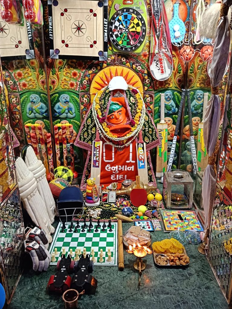 હનુમાનજી મંદિરમાં દાદાને આધુનિક રમત ગમતના સાધનોના દિવ્ય શણગાર કરવામાં આવ્યા