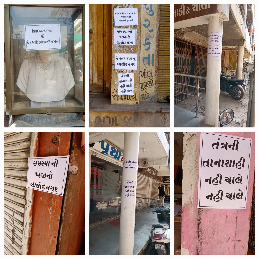 રસ્તાની માંગણીને લઈ દુકાનો પર નગરપાલિકા વિરુદ્ધ સૂત્રોચ્ચાર લખી અનોખી રીતે વિરોધ કરાયો