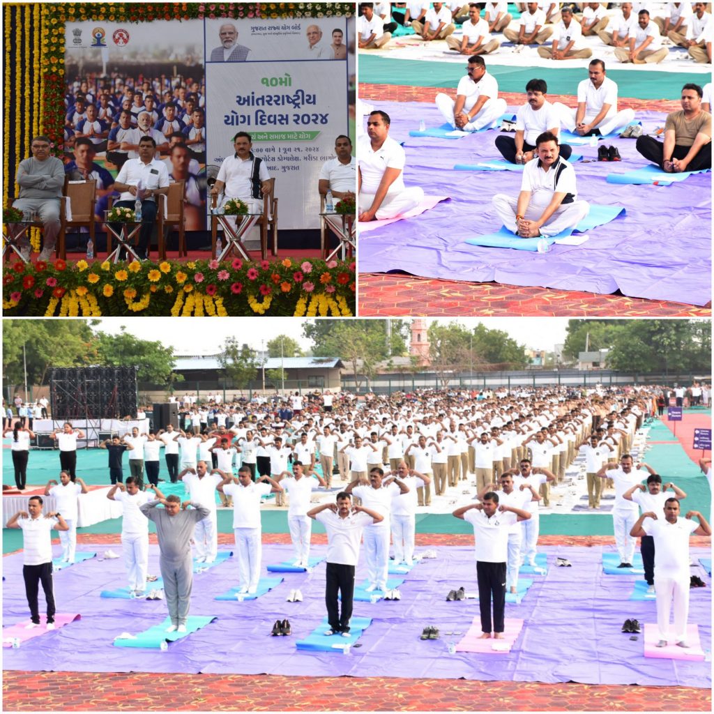 નડિયાદ સ્પોર્ટસ કોમ્પલેક્ષ ખાતે જિલ્લા કક્ષાનો આંતરાષ્ટ્રીય યોગ દિવસ ઉજવણી કાર્યક્રમ યોજાયો