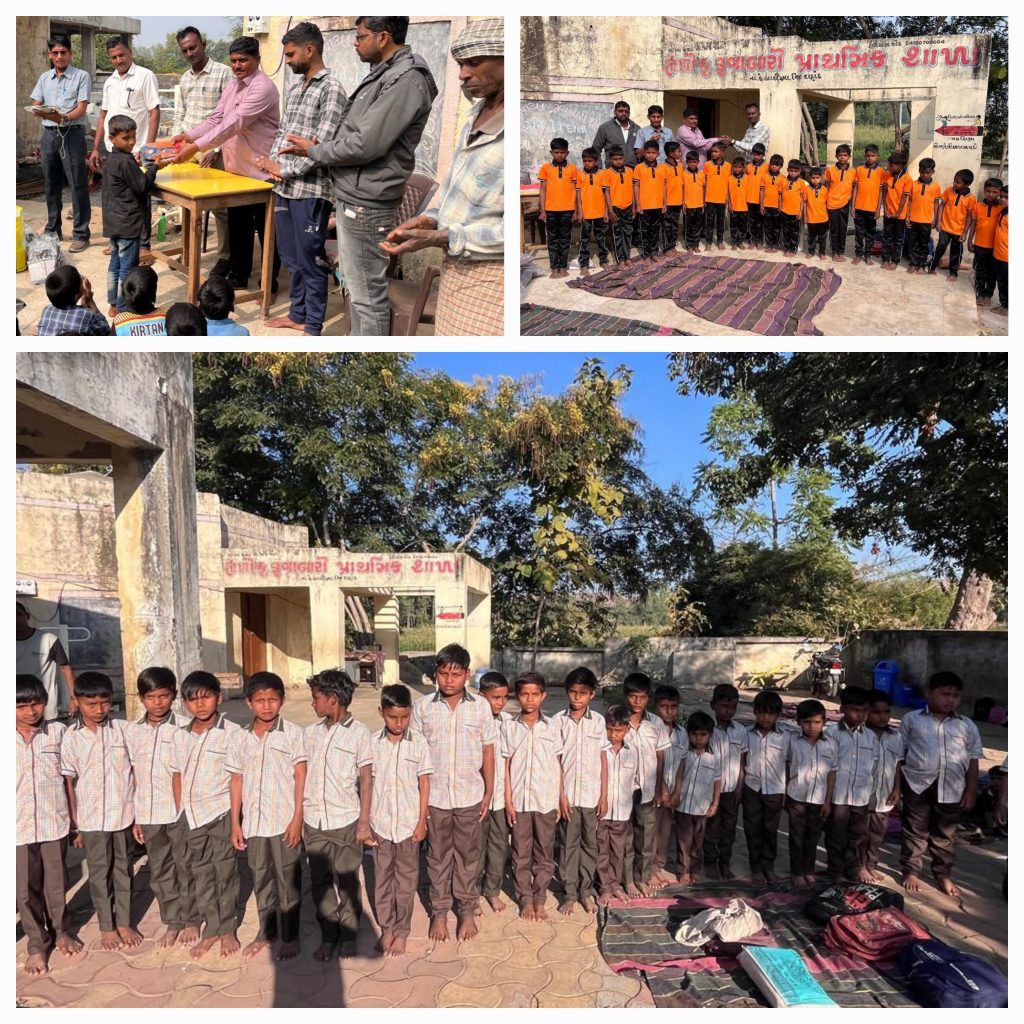 શાળાના આચાર્ય ભાવિકભાઈ દવે બાળકો તેમજ શાળા પરિવાર શાળા ના પ્રથમ દાતા