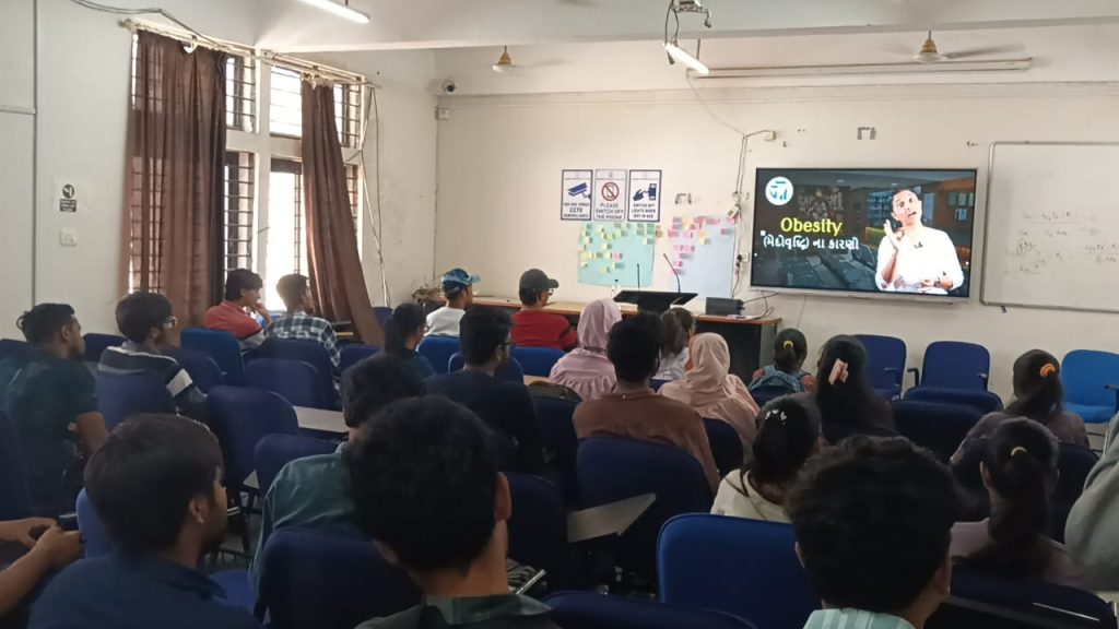 સ્થૂળતા ઘટાડવા માટે વ્યક્તિએ તંદુરસ્ત આહાર અને નિયમિત કસરતના સંયોજન પર ધ્યાન કેન્દ્રિત કરવા સાથે સંતુલિત આહાર, કેલરીનું પ્રમાણ ઘટાડવું અને શારીરિક પ્રવૃત્તિમાં વધારો કરવો એ ચાવીરૂપ બાબત છે. સ્થૂળતા ઘટાડવા વિદ્યાર્થીઓને પ્રેરિત કરવા માટે વિડિઓઝ દર્શાવી જાગૃત કરવામાં આવ્યા હતા. જેમાં કોલેજના વિદ્યાર્થીઓ અને ફેકલ્ટી સભ્યો સક્રિયપણે ભાગ લીધો હતો.