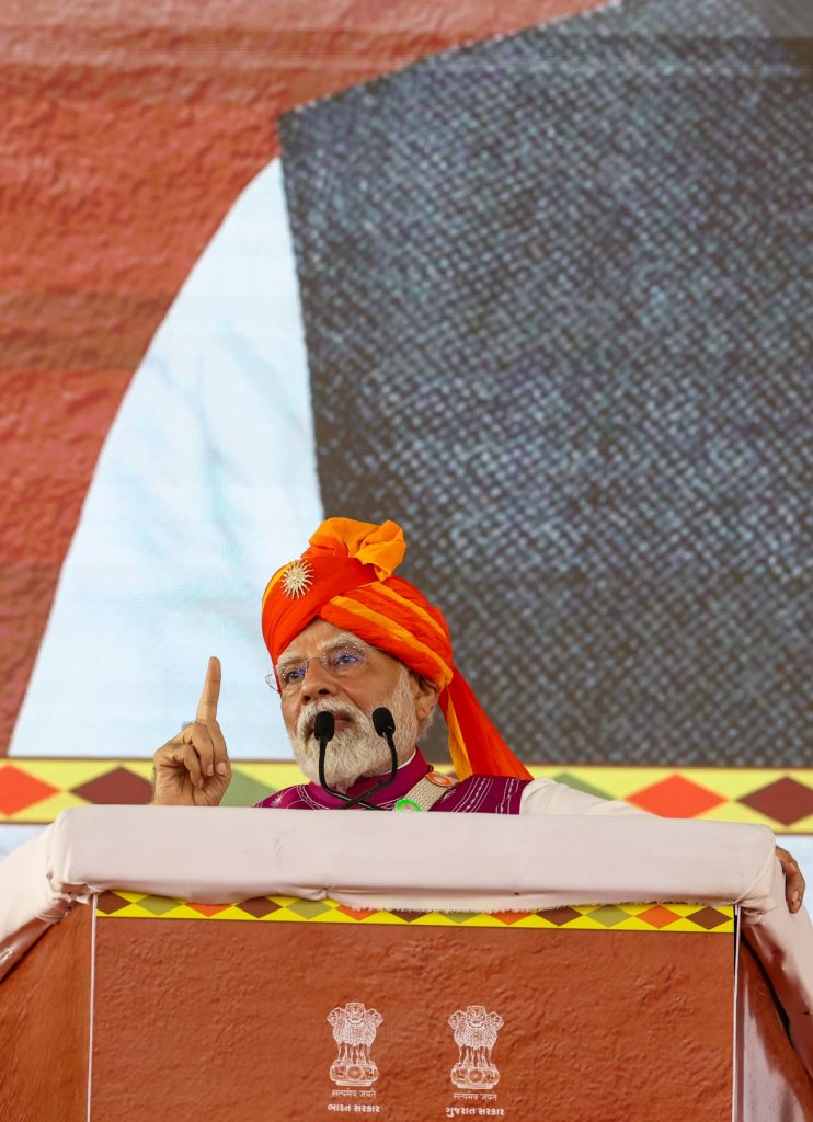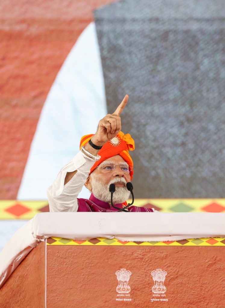 આદિવાસી સમાજના ઉત્થાન પર ભાર મૂકતાં વડાપ્રધાનએ જણાવ્યું કે ગુજરાતના આદિવાસી પટ્ટામાં શિક્ષણ, આરોગ્ય અને ઇન્ફ્રાસ્ટ્રક્ચરના ક્ષેત્રે નોંધપાત્ર કામ થયું છે. એકલવ્ય મોડેલ સ્કૂલો, આઈટીઆઈ, મેડિકલ કોલેજો અને ટ્રાઇબલ યુનિવર્સિટીઓની સ્થાપનાથી આદિવાસી યુવાનોને શિક્ષણ અને કૌશલ્ય વિકાસની નવી તકો મળી છે. પીએમ જનમન યોજના દ્વારા આદિવાસી સમાજના સૌથી પછાત વર્ગો માટે ઘર, શિક્ષણ અને રોજગારની વ્યવસ્થા કરવામાં આવી રહી છે, જે આદિવાસી સમુદાયના સર્વાંગી વિકાસને પ્રોત્સાહન આપે છે.