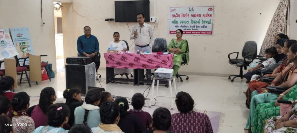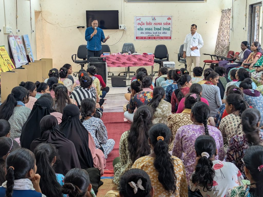 “”PERIODS friendly world”” થીમ અંતર્ગત માસિક દરમિયાન ની સ્વચ્છતા અંગે ર્ડો મેમણ સર, ર્ડો દર્શનાબેન, ર્ડો ખુશીબેન, ICDS માંથી એમીબેન જોશેફ(CDPO), જેઓના દ્વારા કિશોરીઓ અને મહિલા ઓ ને માસિક કેવી રીતે આવે છૅ?, માસિક દરમિયાન ની સ્વચ્છતા, માસિક દરમિયાન ઉપયોગ માં લેવાતા શોસકો, માસિક દરમિયાન ની તકલીફ , માસિક ને લગતી અંધશ્રદ્ધા, સેનેટરી પેડ્સ નો નિકાલ અને વ્યવસ્થાપન ની સમજ આપી. અંતે કિશોરો સાથે પ્રશ્નોત્તરી સેશન કરી વૈજ્ઞાનિક માહિતી આપવામાં આવી. અને આજ રોજ ર્ડો હાર્દિક વ્યાસ દ્વારા અનેમીયા માટે આયર્ન ટેબ નું મહત્વ સમજવામાં આવ્યું. ICDS માંથી એમીબેન જોશેફ (CDPOshri) દ્વારા પોષણ નું મહત્વ અને પૂર્ણા શક્તિ પેકેટ વિશે સમજ આપવામાં આવી હતી.
