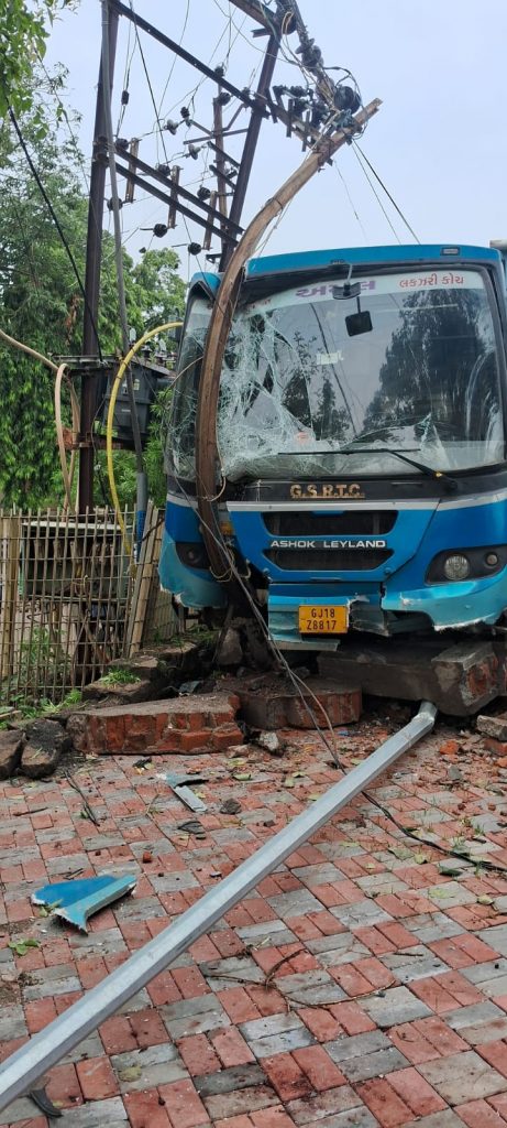 દાહોદ શહેરમાં બેફામ દોડતી એસટી બસોને કારણે મોટી દુર્ઘટનાના ડોકાતા ભય વચ્ચે આજે વહેલી પરોઢે પૂરપાટ દોડી આવતી જામનગર-દાહોદ એસટી બસ શહેરમાં પ્રવેશ્યા બાદ દેસાઈવાડ સ્થિત વલ્લભ ચોકમાં બેકાબુ બની વીજ ટ્રાન્સફોર્મર અને તેની પાસેની દિવાલ સાથે ધડાકાભેર અથડાતા દિવાલ તૂટી જવા પામી હતી તેમજ વીજ ટ્રાન્સફોર્મરને ભારે નુકસાન થવા પામ્યું હતું. જેના પગલે આસપાસના સમગ્ર વિસ્તારમાં વીજળી ડુલ થઈ જતા અંધારપટ છવાયો હતો. એસટી બસ એટલી જોશભેર પાસેના વીજપોલ સાથે અથડાઈ હતી કે લોખંડનો વીજપોલ પણ બેન્ડ થઈ ગયો હતો. જોકે ચાલકના જણાવ્યા અનુસાર કૂતરું આડે આવતા આ દુર્ઘટના સર્જાઈ હતી. પરંતુ ઉલ્લેખનીય છે કે શહેરના ગોધરા રોડ વિસ્તારમાં એક અઠવાડિયામાં આ ત્રીજી ઘટના છે દાહોદ શહેરમાં યમદૂતની બની માતેલા સાંઢની જેમ ધસમસતી દોડી આવતી આ એસટી બસો કોઈક દિવસ કોઈ મોટી દુર્ઘટના સર્જશે અને કંઈ કેટલાના જીવ લેશે તે નક્કી છે. જેથી કરીને શહેરમાં બેફામ દોડતી એસટી બસો પર નકેલ કસવાની તાતી જરૂર છે. આજરોજ વહેલી સવારે પોણા ચાર વાગ્યાના સુમારે પૂરપાટ દોડી આવતી જામનગર- દાહોદ એસટી બસ દાહોદના સ્ટેશન પહોંચે તે પહેલા જ શહેરના તળાવ સ્થિત વલ્લભ ચોકમાં બેકાબુ બની ટ્રાન્સફોર્મર પાસેની બાઉન્ડ્રી વોલ તોડી ટ્રાન્સફોર્મર સાથે ધડાકાભેર અથડાઈ હતી. જેના પગલે વીજ સપ્લાય ખોરવાતા આસપાસના વિસ્તારમાં અંધારપટ છવાયો હતો. બોરસદ ડેપોની જામનગર-દાહોદ એસટી બસના ચાલક ઝેડ એસ મલિકના જણાવ્યા અનુસાર કુતરુ રોડ પર આવતા તેને બચાવવા જતા આ દુર્ઘટના સર્જાઈ હતી. આ દુર્ઘટનામાં એસટી બસ લોખંડના મજબૂત વીજ પોલ સાથે અથડાતા વીજ પોલ આખો બેન્ડ થઈ ગયો હતો. એના પરથી વિચારો કે એસટી બસની ઝડપ કેટલી બધી હશે. સિટીમાં આટલી બધી ઝડપે એસટી બસ દોડાવવી શું ખરેખર વ્યાજબી છે. આ વીજ પોલ પરથી પસાર થતી ૧૧ કેવી ની હેવી લાઇનના જીવતા વાયર બસ ઉપર પડ્યા હોત તો તમે કલ્પના કરો કે અંદર બેઠેલા મુસાફરો અને ચાલક ક્લીનરની તેમજ એસ.ટી બસની શું હાલત થતી. સદભાગ્યે આ ઘટનામાં કોઈ જાનહાનિ થઈ નથી. પરંતુ અત્રે નોંધનીય છે કે દાહોદ શહેરમાં એસટી બસ અકસ્માતનો માત્ર ગોધરા રોડ વિસ્તારમાં જ એક અઠવાડિયામાં આ ત્રીજો બનાવ છે. દાહોદ શહેરમાં એસટી બસોના ચાલક ખાસ કરીને રાત્રિ દરમિયાન બેફામ બસો દોડાવે છે. જેના પગલે આગામી સમયમાં દાહોદમાં યમદૂત બની માતેલા સાંઢની જેમ દોડતી આ એસટી બસો નક્કી કોઈ દિવસ મોટી દુર્ઘટના સર્જી કંઈ કેટલાયનો ભોગ લેશે. તેવી આશંકાઓ સેવાઈ રહી છે.