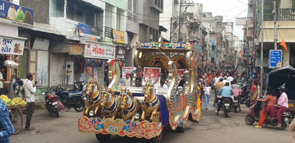 દાહોદ નગરની ધન્ય ધરા પર રાષ્ટ્રસંત આચાર્ય દેવ શ્રીમદ્ વિજય લેખેન્દ્ર સુરિશ્વરજી મહારાજ સા.ની અજ્ઞાનુવર્તીની સાધ્વી શ્રી અનંત ગુણાશ્રીજી મહારાજ સા. આદિ સાધ્વી વૃંદનું આજે દાહોદ નગરમાં ચાતુર્માસ પ્રવેશ થયો હતો. આ અવસરે સવારે નગરપાલિકા ચૌક ખાતેથી બેન્ડબાજા સાથે સકલ જૈન સંઘના શ્રાવક-શ્રાવિકાઓ નગરના વિભિન્ન વિસ્તારોથી ફરી સીમંધર મંદિર ખાતે પહોંચ્યા હતા ત્યાં ભવ્ય પાંડાલમાં પ્રવચન સાથે વિભિન્ન કાર્યક્રમોનું આયોજન કરવામાં આવ્યુ હતુ. સાંસ્કૃતિક કાર્યક્રમમાં સંગીતકાર દેવેશ જૈન તથા સૌરભ ચૌપડાએ વિભિન્ન ચડાવા કાર્યક્રમો પ્રસ્તૃત કર્યા હતા. સાધ્વીજીના ચાતુર્માસ કાર્યક્રમમાં મુંબઈ, હૈદરાબાદ તથા વિભિન્ન સ્થાનો પરથી સામેલ થવા શ્રાવકો આવ્યા હતા. ચાતુર્માસ માટે પધારેલ શાસન જ્યોતિ સાધ્વી અનંત ગુણાશ્રીજીની સાથે સાધ્વી ભવિતા ગુણાશ્રીજી સાધ્વી સમકીત ગુણાશ્રીજી તથા સાધ્વી અક્ષય ગુણાશ્રીજી પધારેલ છે. ચાતુર્માસના ચાર મહિનાના કાર્યક્રમને ધર્મધ્યાન ચાતુર્માસ ૨૦૨૫ નામ આપવામાં આવ્યું છે. આજે દીપ પ્રગટાવી ચાતુર્માસનો શુભારંભ કરવામાં આવ્યો હતો. આ અવસરે સીમંધર સ્વામી મહિલા ફેડરેશન દ્વારા સ્વાગત ગીત પણ પ્રસ્તુત કરવામાં આવ્યુ હતો. સમાજના સમસ્ત લોકોને ચાર મહિનાના ચાતુર્માસ દરમ્યાન પુણ્ય અર્જન માટે પ્રેરણા આપવામાં આવી હતી.