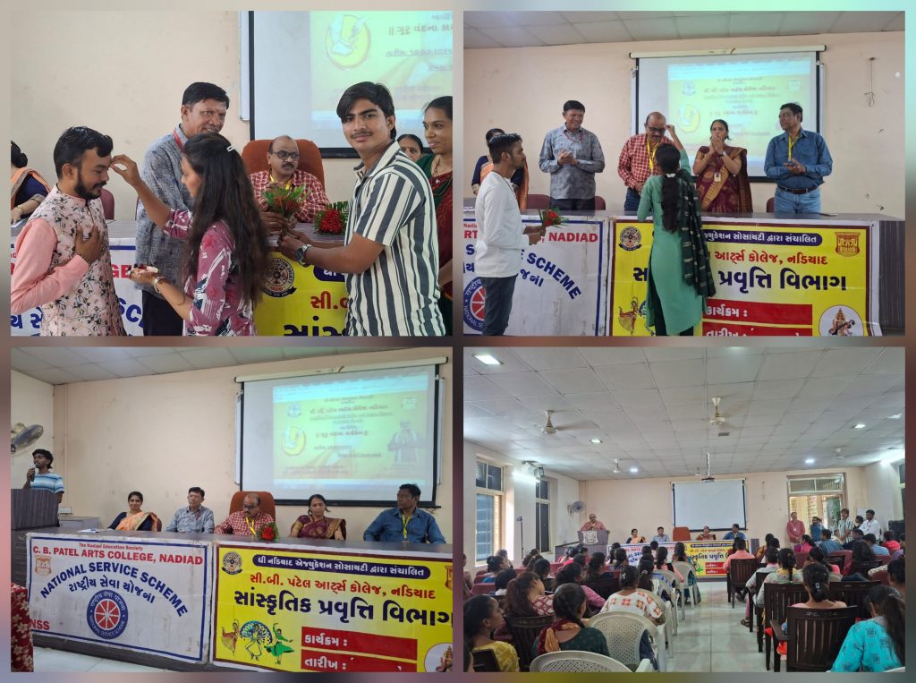 ધી નડિયાદ એજ્યુકેશન સોસાયટી સંચાલિત સી. બી. પટેલ આર્ટસ કોલેજ ખાતે આજે ગુરુપૂર્ણિમા પર્વ નિમિત્તે ગુરુવંદના કાર્યક્રમનું ભવ્ય આયોજન કરવામાં આવ્યું હતું. કોલેજના સાંસ્કૃતિક વિભાગ, રાષ્ટ્રીય સેવા યોજના (NSS) અને સંસ્કૃત વિભાગના સંયુક્ત ઉપક્રમે યોજાયેલા આ કાર્યક્રમથી કોલેજનું વાતાવરણ ભક્તિમય બન્યું હતું.