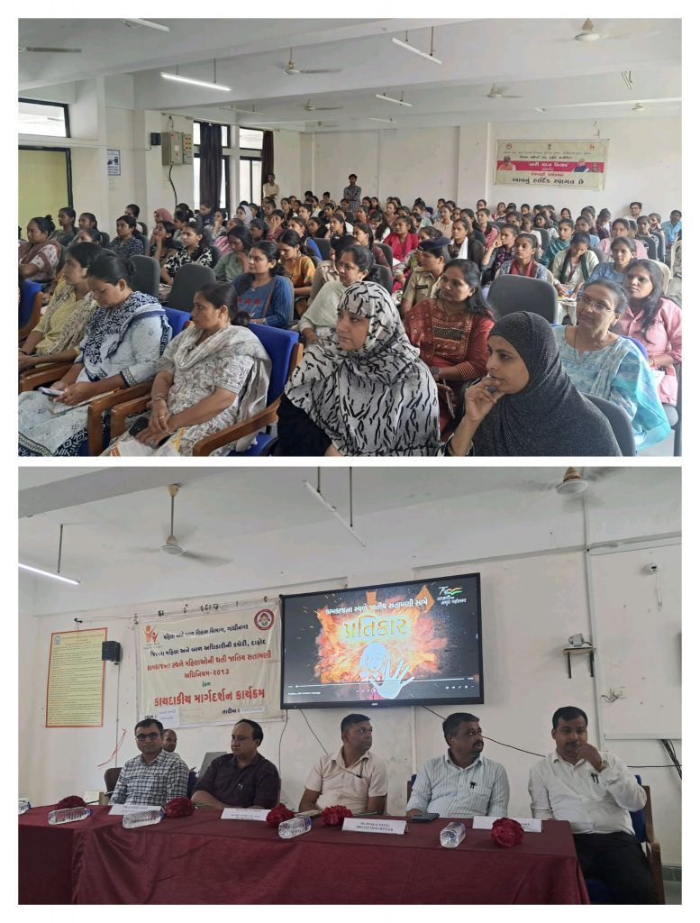 કામકાજના સ્થળે મહિલાઓની થતી જાતીય સતામણી અધિનિયમ-૨૦૧૩ અંગે પ્રોટેકશન ઓફિસર પંકજ પટેલએ પીપીટી દ્વારા વિગતે જાણકારી આપી જણાવ્યું હતું કે, આંતરિક અને સ્થાનિક સમિતિની કામગીરી એક સિવિલ કોર્ટની કામગીરી બરાબર હોય છે. સિવિલ કોર્ટ પાસે જે સત્તા હોય છે એ સત્તા આંતરિક અને સ્થાનિક સમિતિ પાસે હોય છે. વધુમાં તેમણે આંતરિક અને સ્થાનિક સમિતિ ની રચના અને કામગીરી વિશે સમજ આપી હતી. સ્ત્રીઓ પોતાના જન્મથી માંડીને મરણ સુધી સતત સંઘર્ષ કરતી હોય છે, એમ જણાવતાં જિલ્લા આયુર્વેદ અધિકારી ડૉ. સુધીર જોશીએ કહ્યું હતું કે, દીકરીને જન્મવાની તક આપવી જોઈએ. દીકરા-દીકરીને સમાનતા આપી તમામ અધિકાર આપવા જરૂરી છે. અને એની શરૂઆત આપણા ઘરની દીકરીઓથી જ કરવી જોઈએ. દીકરીઓની સ્વતંત્રતા અને સુરક્ષા માટે આજના સમાજની માનસિકતા બદલવાની જરૂર છે. એડવોકેટ તરુણ શર્માએ એક મહિલા તરીકે અભ્યાસ કરવો, નોકરી-કામ કરવું, ઘર સંભાળવું, ઘર બહાર નીકળવું એક પડકાર રૂપ છે, એ બાબતે ચર્ચા કરી જાતિય સતામણી કેવી રીતે થઇ શકે છે, એ માટે ફરિયાદ કોને કરવી, આંતરિક સમિતિના સભ્યો કઈ રીતે ફરિયાદીની ફરિયાદ સાંભળીને એ માટેના પગલાં ભરે છે, બાળકો સહિત મહિલાઓએ પણ ગુડ ટચ અને બેડ ટચ અંગે સતર્ક રહેવું જોઈએ. તેમણે વધુમાં આઈ સી સી, આઈ સી તેમજ શી બોક્ષ વિશે માહિતી આપી જરૂર પડ્યે એનો ઉપયોગ કઈ રીતે કરવો એ માટે માર્ગદર્શન આપ્યું હતું. કોઈપણ ઘટના ગંભીર સ્વરૂપ ધારણ કરે એ પહેલાં શરૂઆત થી જ એનો વિરોધ કરી એને રોકવું જોઈએ. જે બાબત મહિલાઓને અનકમ્ફર્ટેબલ ફિલ કરાવે તે બાબત જાતિય સતામણીમાં ગણી શકાય છે. જો કોઈપણ મહિલા આંતરિક સમિતિ ફરિયાદ કરે તો તેમનું નામ જાહેર કરવામાં આવતું નથી એમ તેમણે જણાવ્યું હતું. આ કાર્યક્રમ દરમ્યાન પ્રોટેકશન ઓફિસર પંકજ પટેલ, જિલ્લા આયુર્વેદ અધિકારી ડૉ. સુધીર જોશી, એડવોકેટ તરુણ શર્મા, કોલેજના આચાર્ય, વિવિધ સરકારી કચેરીઓમાંથી નિમણુંક થયેલ આંતરિક સમિતિના સભ્યઓ, સખી વન સ્ટોપ સેન્ટરની ટીમ, ૧૮૧ અભયમની ટીમ, કોલેજ સ્ટાફ તેમજ વિદ્યાર્થીનીઓ ઉપસ્થિત રહી હતી.