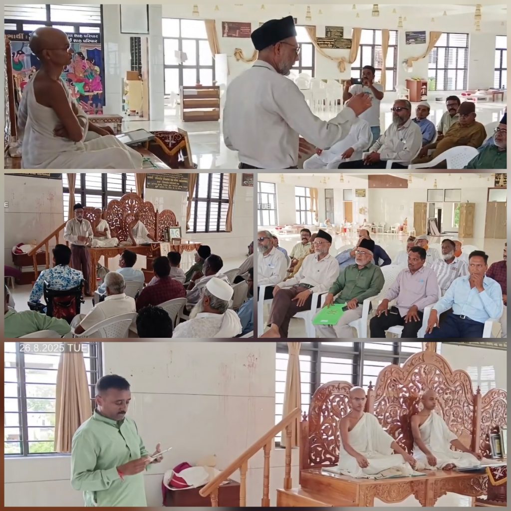 પર્વાધિરાજ પર્યુષણ પર્વના પાવન અવસર પર કોમી એકતા અને સદભાવનાનું અનોખું ઉદાહરણ પૂરું પાડતાં, નડિયાદના મુસ્લિમ સમાજે સંવત્સરીના પવિત્ર દિવસે સ્વયંભૂ રીતે કતલખાના બંધ રાખવાનો નિર્ણય કર્યો હતો. આ સરાહનીય પગલા બદલ મુસ્લિમ સમાજના સભ્યોએ નડિયાદ જૈન સંઘના ઉપાશ્રયની મુલાકાત લીધી હતી. આ મુલાકાત દરમિયાન, મુસ્લિમ સમાજના પ્રતિનિધિઓએ જૈન મુનિ શ્રી સુભાષિત મહારાજ સાહેબ અને શ્રી નંદાવ્રત મહારાજ સાહેબ સાથે સૌહાર્દપૂર્ણ વાતાવરણમાં મુલાકાત કરી હતી. આ મુલાકાતનો મુખ્ય ઉદ્દેશ્ય સર્વધર્મ સમભાવ અને એકબીજાના તહેવારો પ્રત્યે આદરભાવ દર્શાવવાનો હતો. શ્રી સુભાષિત મહારાજ સાહેબે મુસ્લિમ સમાજના આ પગલાને બિરદાવતા જણાવ્યું હતું કે આવા પ્રસંગો સમાજમાં પરસ્પર પ્રેમ અને ભાઈચારો વધારે છે. તેમણે ભારપૂર્વક જણાવ્યું કે આવા સદભાવનાના કાર્યોથી જ દેશની સાચી ઓળખ પ્રસ્થાપિત થાય છે. આ મુલાકાતથી નડિયાદમાં હિન્દુ અને મુસ્લિમ સમાજ વચ્ચેના સંબંધો વધુ મજબૂત બન્યા છે અને ભવિષ્યમાં પણ આવા સદભાવનાના પ્રસંગો યોજાતા રહે તેવી આશા વ્યક્ત કરવામાં આવી હતી. આ ઘટનાએ સાબિત કરી દીધું છે કે ધર્મ ભલે અલગ હોય, પરંતુ માનવતાનો ધર્મ સર્વોપરી છે.