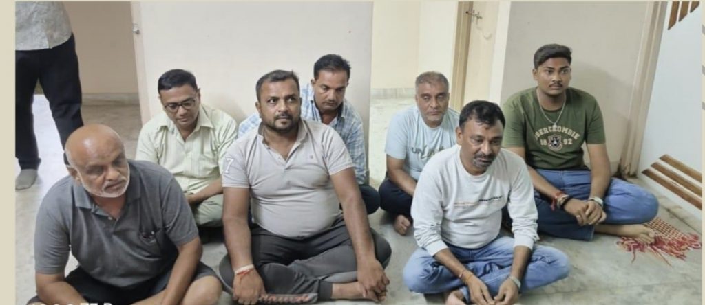 નડિયાદ પશ્ચિમ પોલીસે ૧૧.૮૭ લાખના મુદ્દામાલ સાથે જુગાર રમતા સાત ઈસમોને ઝડપી પાડયા