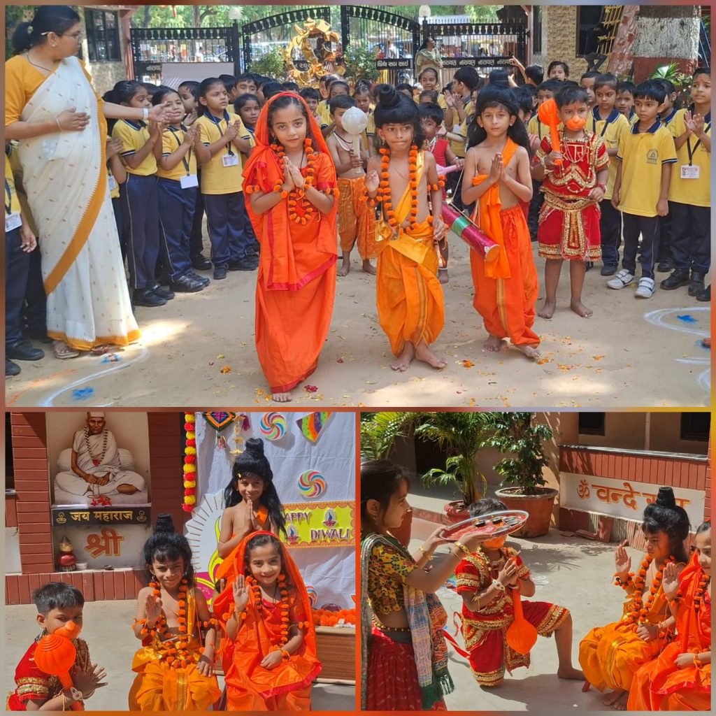 શ્રી સંતરામ મંદિર સંચાલિત શ્રી સંતરામ ઇંગ્લીશ મીડીયમ સ્કૂલના (K.G.) વિભાગના નાના વિદ્યાર્થીઓએ વિદ્યાલયમાં ‘શ્રી રામલીલા’નું સુંદર આયોજન કરીને સૌને અભિભૂત કર્યા હતા. આ નાનકડા ભૂલકાઓએ રામાયણના વિવિધ પવિત્ર પાત્રો ભજવીને ભારતીય સનાતન ધર્મની સાચી ઓળખ આપી હતી અને દિવાળીના પર્વનું ધાર્મિક મહત્વ સમજાવ્યું હતું. વિદ્યાર્થીઓએ પોતાની નિર્દોષ અભિનયકલા દ્વારા રામાયણના પ્રસંગોને જીવંત કર્યા હતા, જેણે ઉપસ્થિત સૌના હૃદય સ્પર્શી લીધા હતા.