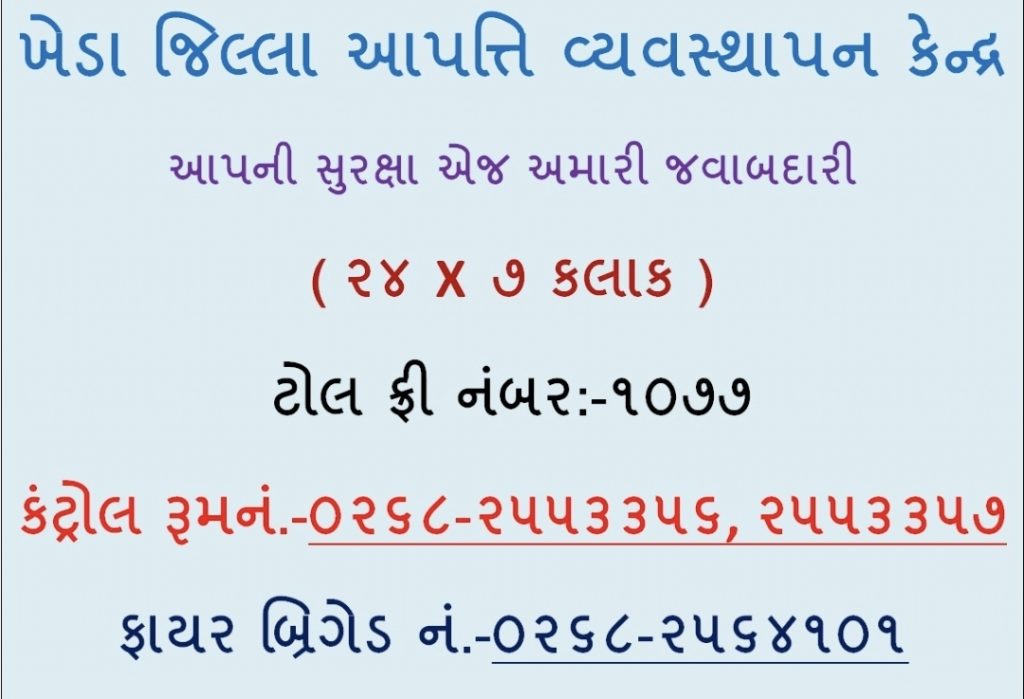 તહેવારોના પર્વ દરમિયાન ખેડા જિલ્લાના નાગરિકોને સુરક્ષા પૂરી પાડવા અને કોઈપણ પ્રકારની આપત્તિ કે કટોકટીની પરિસ્થિતિમાં તાત્કાલિક સહાય મળી રહે તે માટે ખેડા જિલ્લા ઇમરજન્સી ઓપરેશન સેન્ટર ને સંપૂર્ણ સજ્જ કરીને સતત ૨૪ કલાક કાર્યરત રાખવાનો નિર્ણય લેવામાં આવ્યો છે.