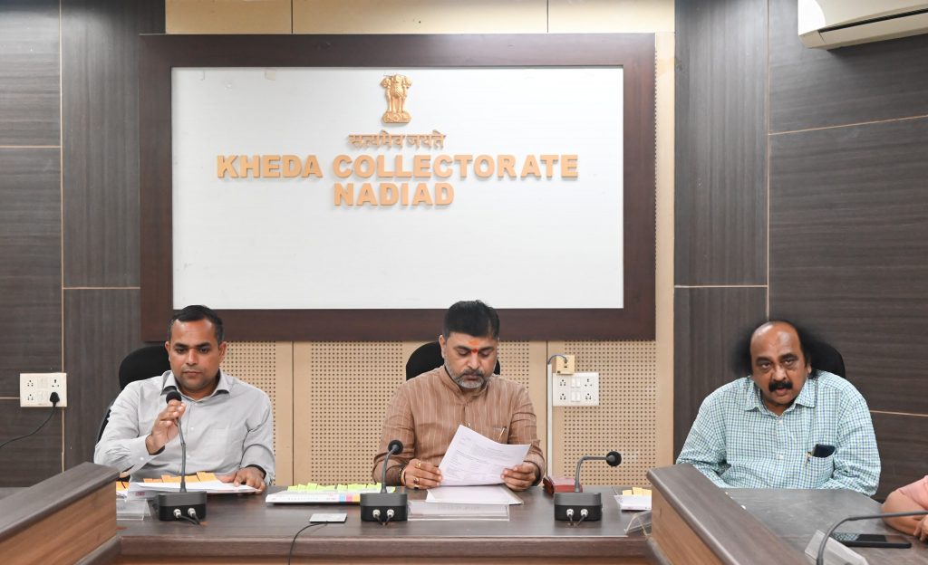 મહેસુલ, પંચાયત અને આપત્તિ વ્યવસ્થાપન રાજ્યમંત્રી સંજયસિંહ મહિડાની અધ્યક્ષતામાં કલેક્ટર કચેરી, નડિયાદ ખાતે કમોસમી વરસાદથી થયેલ નુકસાન અને આપત્તિ વ્યવસ્થાપન અંગે સમીક્ષા બેઠક યોજાઈ હતી. મંત્રીએ ખેડા જિલ્લામાં કમોસમી વરસાદને કારણે ખેતીના પાકને થયેલા નુકસાન અંગે ચિંતા વ્યક્ત કરી હતી.