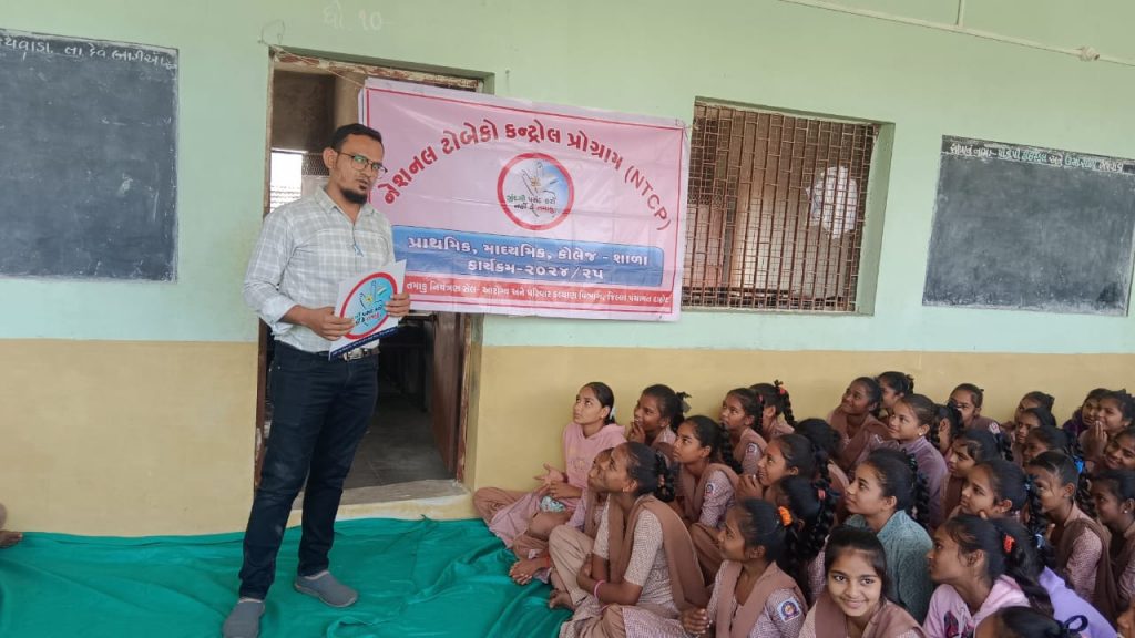 મુખ્ય જિલ્લા આરોગ્ય અધિકારીશ્રી ડૉ. ઉદય ટીલાવત તથા એપિડેમિક મેડિકલ ઓફિસરશ્રી ડૉ. નયન જોષીના માર્ગદર્શન હેઠળ “તમાકુ મુક્ત યુવા અભિયાન 3.0” અંતર્ગત આરોગ્યલક્ષી યોજનાઓને આગળ ધપાવતાં દાહોદ જિલ્લાના દેવગઢ બારિયા તાલુકાની પી.કે.પી. માધ્યમિક અને ઉચ્ચતર માધ્યમિક શાળા, ભથવાડા ખાતે રાષ્ટ્રીય તમાકુ નિયંત્રણ કાર્યક્રમ, જિલ્લા પંચાયત દાહોદ દ્વારા વિશેષ કાર્યક્રમ યોજાયો હતો. આ અભિયાન તા. 09/10/2025 થી 07/12/2025ની અવધિ દરમિયાન સમગ્ર જિલ્લામાં સતત ચાલું છે.