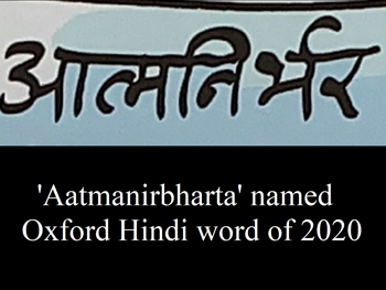 ઓક્સફોર્ડે આર્ત્મનિભરતા શબ્દને ૨૦૨૦નો ઓક્સફોર્ડ હિન્દી વર્ડ ઓફ ધ યર જાહેર કર્યો છે. પ્રધાનમંત્રી નરેન્દ્ર મોદીએ કોરોના વાયરસ મહામારી દરમિયાન આર્ત્મનિભર ભારતનો નારો આપ્યો હતો. તેમણે ભારતીય અર્થવ્યવસ્થા, સમાજ અને વ્યક્તિગત રીતે લોકોને આર્ત્મનિભર બનાવવા પર ભાર મૂક્યો હતો.