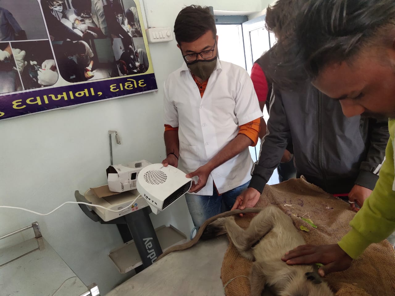 દાહોદના કંબોઈ ગામે એક કપિરાજની તબિયત લથડતા પશુચિકિત્સક હોસ્પિટલ ખાતે સારવાર હેઠળ
