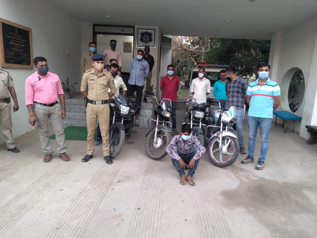 દાહોદ એલ.સી.બી. પોલીસને મળેલ બાતમી મળી હતી કે, મધ્યપ્રદેશના બાલવાસા તરફથી એક ઈસમ નંબર વગરની મોટરસાઈકલ લઈને પસાર થઈ રહ્યો છે જેને આધારે આજરોજ પોલીસે ચાકલીયા બોર્ડર તરફ વોચ ગોઠવી ઉભા હતાં. આ દરમ્યાન બાતમીમાં દર્શાવેલ નંબર વગરની મોટરસાઈકલ સાથે એક ઈસમ ત્યાંથી પસાર થતાં તેને પોલીસે ઉભો રાખ્યો હતો અને પુછપરછ કરતાં સંતોષકારક જવાબ પોલીસને ન મળતાં તેની સઘન પુછપરછમાં આ મોટરસાઈકલ ચોરીની હોવાનું કબુલાત કર્યું હતું. વધુમાં જાણવા મળ્યા અનુસાર, આ ઝડપાયેલ મોટરસાઈકલ ચોરનું નામ મંજુરભાઈ દિનેશભાઈ ભુરીયા (રહે. ચરેલ, નાળ ફળિયું, તા.મેઘનગર,જિ.ઝાબુઆ, મધ્યપ્રદેશ) હોવાનું જણાવ્યું હતું. આ ચોર તેના ગેંગના અન્ય સાગરીતો સાથે મળી મોટરસાઈકલ ચોરી કરતાં હતાં અને ચોક્કસ જગ્યાએ સંતાડી રાખી વેચવા માટે ફરતાં હતાં. પોલીસે આ ઝડપાયેલ મોટરસાઈકલ ચોરની વધુ પુછપરછમાં જણાવ્યા અનુસાર, અન્ય ૩ મોટરસાઈકલો અનાસ નદીના પટમાં જવાના રસ્તાની બાજુમાં ઝાડી જંગલમાં છુપાવી રાખેલ છે. આ જાણતા પોલીસે આ વિસ્તારમાં તપાસ હાથ ધરી હતી અને અન્ય ચોરીની મોટરસાઈકલો પણ કબજે કરી હતી. આ આખી ગેંગ મધ્યપ્રદેશની છે અને આ ગેંગમાં કુલ ૦૫ સભ્યો છે. ભુતકાળાં લુંટ, ધાડ તેમજ ઘરફોડ તેમજ ચોરી અને પેટ્રોલ પંચ લુંટ તેમજ એસ.આર.પી. જવાનની એસ.એલ.આર. બંદુકની ચોરી જેવા ગંભીર પ્રકારના ગુન્હાઓમાં જિલ્લા તેમજ આંત જિલ્લાના ગુનાઓમાં પકડાઈ ચુકેલ છે જેઓ જામીન પર મુક્ત થયા બાદ ફરીથી એકત્રિત થઈ વાહન ચોરીના ગુન્હાઓને અંજામ આપતાં હતાં. આ ઝડપાયેલ મોટરસાઈકલ ચોર ચોરીના વાહનો વેચવા માટે ગ્રાહકો શોધવાની સક્રિય ભુમીકા ભજવે છે. આમ, દાહોદ એલ.સી.બી.પોલીસે ઉપરોક્ત મોટરસાઈકલ ચોરને ચાર ચોરીની મોટરસાઈકલો સાથે ઝડપી પાડી કુલ રૂા.૧,૩૦,૦૦૦નો મુદ્દામાલ કબજે કર્યાે હતો. કબજે કરવામાં આવેલ ચોરીની આ ચાર મોટરસાઈકલોની ફરિયાદ પંચમહાલ, ઝાલોદ અને લીમખેડા મુકામે નોંધાઈ હોવાનું પણ જાણવા મળે છે.
