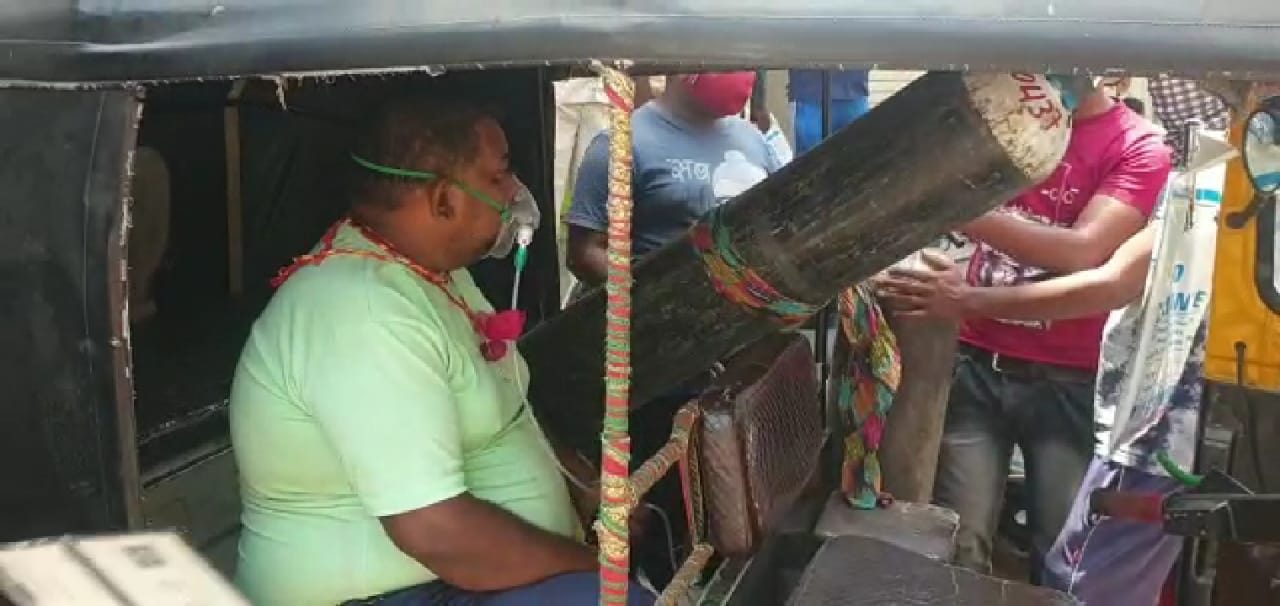 દાહોદ જાણે કોરોના અંતિમ ચરમસીમાએ પહોંચી ગયો છે તેમ પ્રતિત થઈ રહ્યું છે. આજે દાહોદ શહેરની એક ખાનગી હોસ્પિટલની બહાર એક દર્દીને હોસ્પિટલમાં બેડની અછતના કારણે રિક્ષામાં જ ઓક્સિજન અપાતા ઉપસ્થિત સૌ કોઈ અચંબામાં મુકાઈ ગયા હતા. દર્દીને રિક્ષામાં જ ઓક્સિજન સહિતની સારવાર આપવામાં આવી રહી છે.