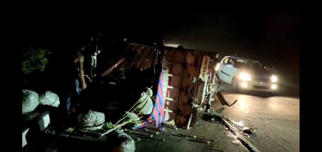 દાહોદના અમદાવાદ – ઈન્દૌર હાઈવે પર મોડી રાત્રે એક શાકભાજી ભરે ટેમ્પો પલ્ટી ખાધી : સદ્‌નસીબે કોઈ જાનહાની નહીં