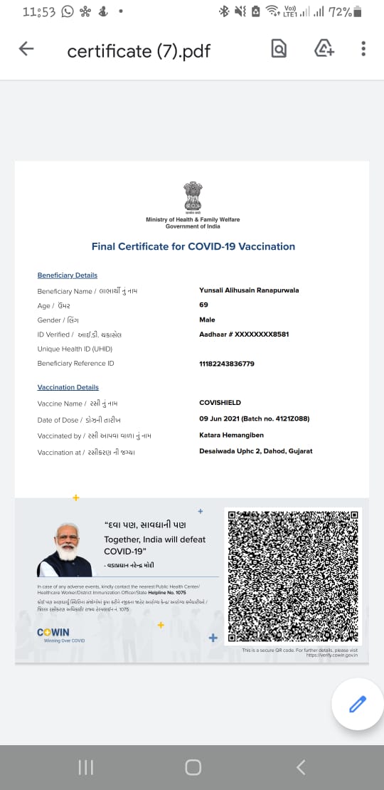 દાહોદમાં ફરીવાર કોરોના રસીકરણમાં છબરડા : કોરોનાની રસીકરણનો બીજાે ડોઝ ન લીધો છતાં સક્સેસફુલ મેસેજ આવ્યો
