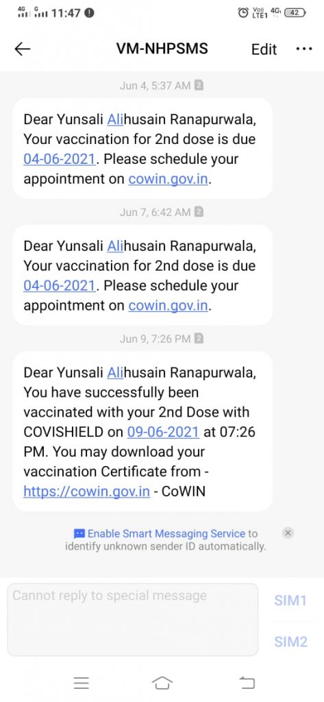 દાહોદ જિલ્લામાં ફરીવાર કોરોનાની રસીકરણના રજીસ્ટ્રેશનના નામે છબરડો જાેવા મળ્યો હતો. દાહોદના એક વ્યક્તિએ કોરોનાનો બીજાે ડોઝ ન લીધાં છતાંય મેસેજ આવતાં કુતુહલ સાથે આશ્ચર્ય સર્જાયું હતું.