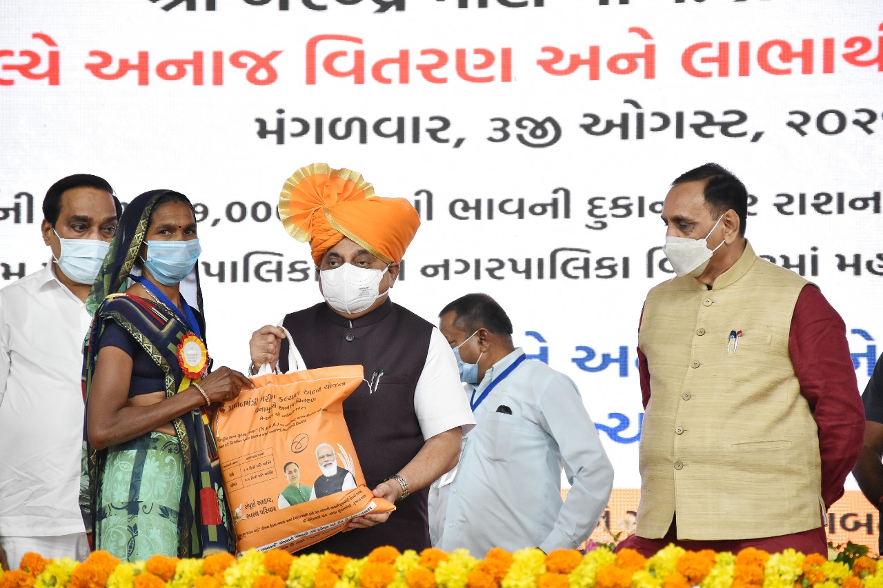 તેમણે ઉમેર્યું કે, ગુજરાતમાં નરેન્દ્રભાઈએ જે વિકાસનો માર્ગ ચિંઘ્યો હતો એ જ માર્ગ પર આ સરકાર ગરીબ, વંચિત, અંત્યોદયના ઉત્થાન માટે કાર્યરત છે. ગુજરાતની ૧૭ હજાર સરકાર માન્ય સસ્તા અનાજની દુકાનો પરથી ૭૧ લાખ અંત્યોદય ગરીબ પરિવારોના-સાડા ત્રણ કરોડ લોકોને વિનામૂલ્યે અનાજ આપીને “સૌને અન્ન-સૌને પોષણના” સંકલ્પને આ સરકારે સાકાર કર્યો છે.