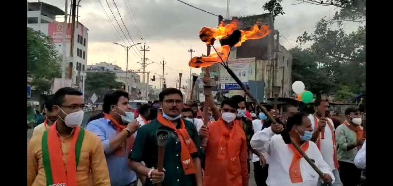 દાહોદ શહેરમાં ભારતીય જનતા પાર્ટીના યુવા મોરચા દ્વારા મશાલ રેલીનું આયોજન કરાયું