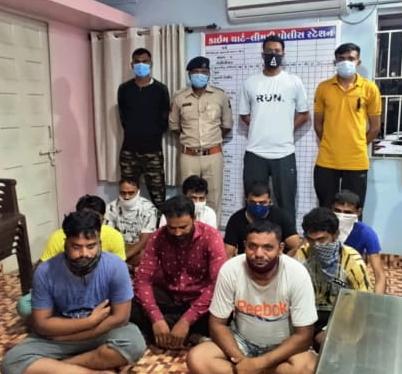 ઝાલોદ તાલુકાની લીમડી નગર પોલીસને મળેલ બાતમીના આધારે ગતરોજ લીમડી નગરના ડબગરવાસમાં અંધારામાં ચોકમાં લાઈટના અજવાળામાં શ્રાવણીયો જુગાર રમી રહેલ નવ જુગારીઓને ઝડપી પાડ્યાં હતાં. પોલીસે અંગ ઝડતી અને દાવ પરથી રોકડા રૂપીયા તેમજ મોબાઈલ ફોન તેમજ પત્તા પાના સહિતનો મુદ્દામાલ કબજે લઈ કુલ રૂા.૫૫,૬૧૦નો મુદ્દામાલ પોલીસે કબજે લઈ નવ જુગારીઓ વિરૂધ્ધ જુગાર ધારાની કલમ મુજબ ગુનો નોંધી જેલના સળિયા પાછળ ધકેલી દેવામાં આવ્યાં હતાં.