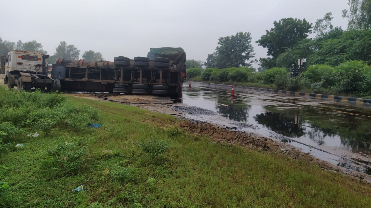 દાહોદ તાલુકાના જેકોટ નજીક ઇન્દોર અમદાવાદ નેશનલ હાઈવે પર ઓઇલ ભરેલું ટેન્કર પલ્ટી ખાતા સુરક્ષાની દ્રષ્ટિએ એક તરફનો હાઈવે બંધ કરવાની ફરજ પડી