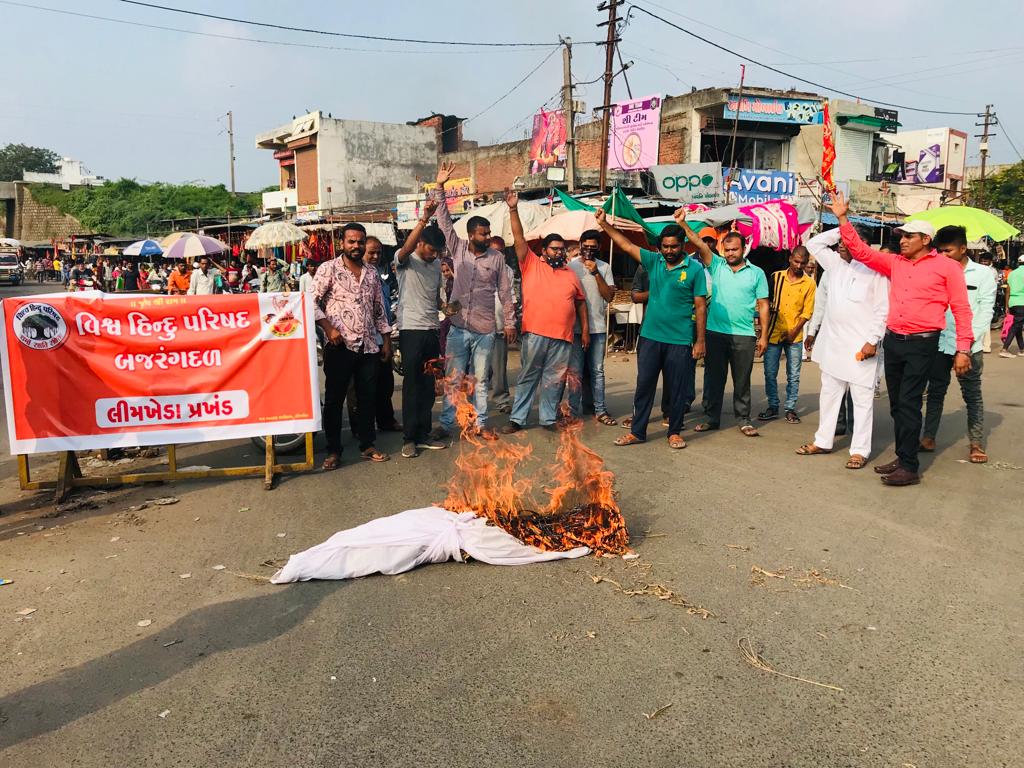 જમ્મુ અને કાશ્મીરમાં આતંકવાદીઓ દ્વારા હિન્દુ બહેન – ભાઈની ક્રૂર હત્યાના સંદર્ભમાં દાહોદ શહેર, લીમખેડા અને ઝાલોદના લીમડી નગરમાં વિશ્વ હિન્દુ પરિષદ અને બજરંગ દળ દ્વારા ભારે વિરોધ દર્શાવવામાં આવ્યો હતો. દાહોદ અને લીમખેડા નગરમાં આના વિરોધમાં પુતળા દહન પણ કરવામાં આવ્યું હતું. આ ઘટનાને પગલે હિન્દુ સંગઠનોમાં ભારે આક્રોશ પણ જાેવા મળ્યો હતો અને આતંકવાદ સામે ભારત સરકાર કડકમાં કડક પગલાં લઈ આતંદવાદને દેશ, દુનિયામાંથી ખતમ કરી નાંખવામાં આવે તેવી રજુઆત કરવામાં આવી હતી.