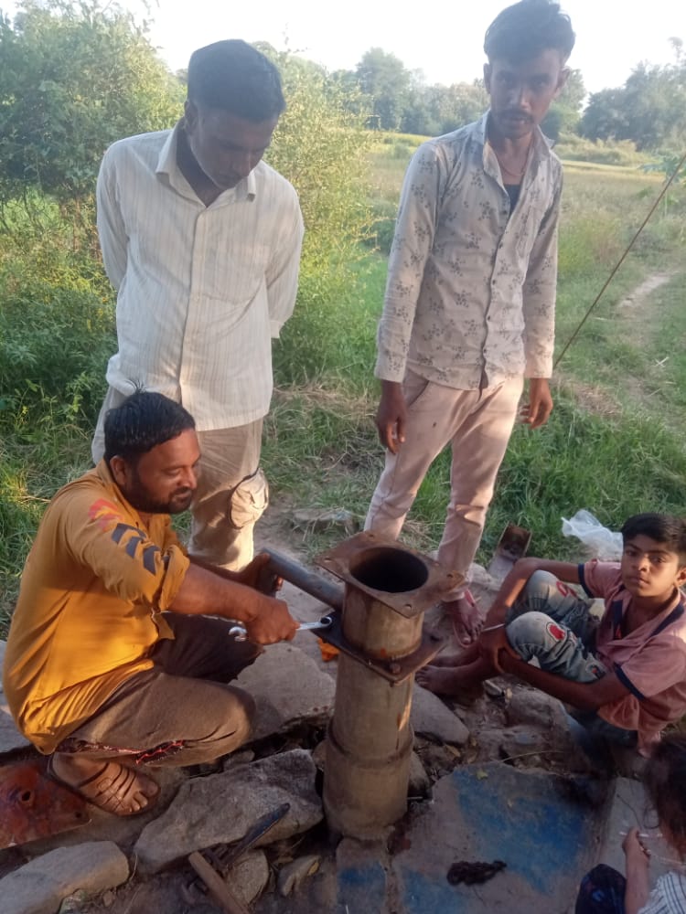 ડોડીયા ફળિયાના રહીશો એ સ્વ ખર્ચે હેડ પંમ્પ રીપેરીંગ કર્યો. તંત્રને ત્રણ દિવસથી જાણ કરવા છતાં કોઈ ફરક્યું પણ નથી