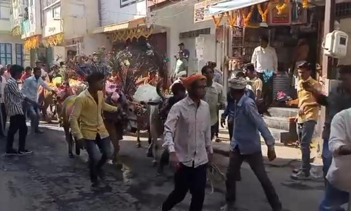 ઢોલ નગારાના તાલે ગાયોના ધણને દોડાવવામા આવે છે