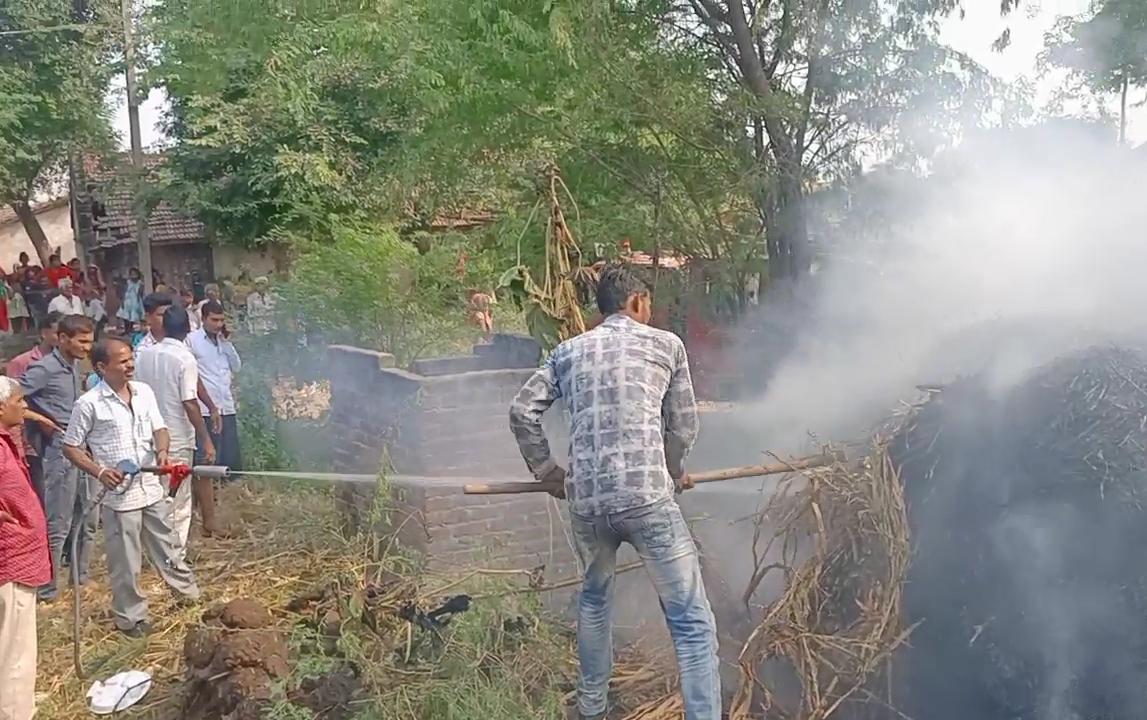 દાહોદ જિલ્લાના ઝાલોદ તાલુકાના લીલવાપોર ગામે ઘાસચારામાં આકસ્મીક આગ : સંપુર્ણ ઘાસચારો બળીને ખાખ